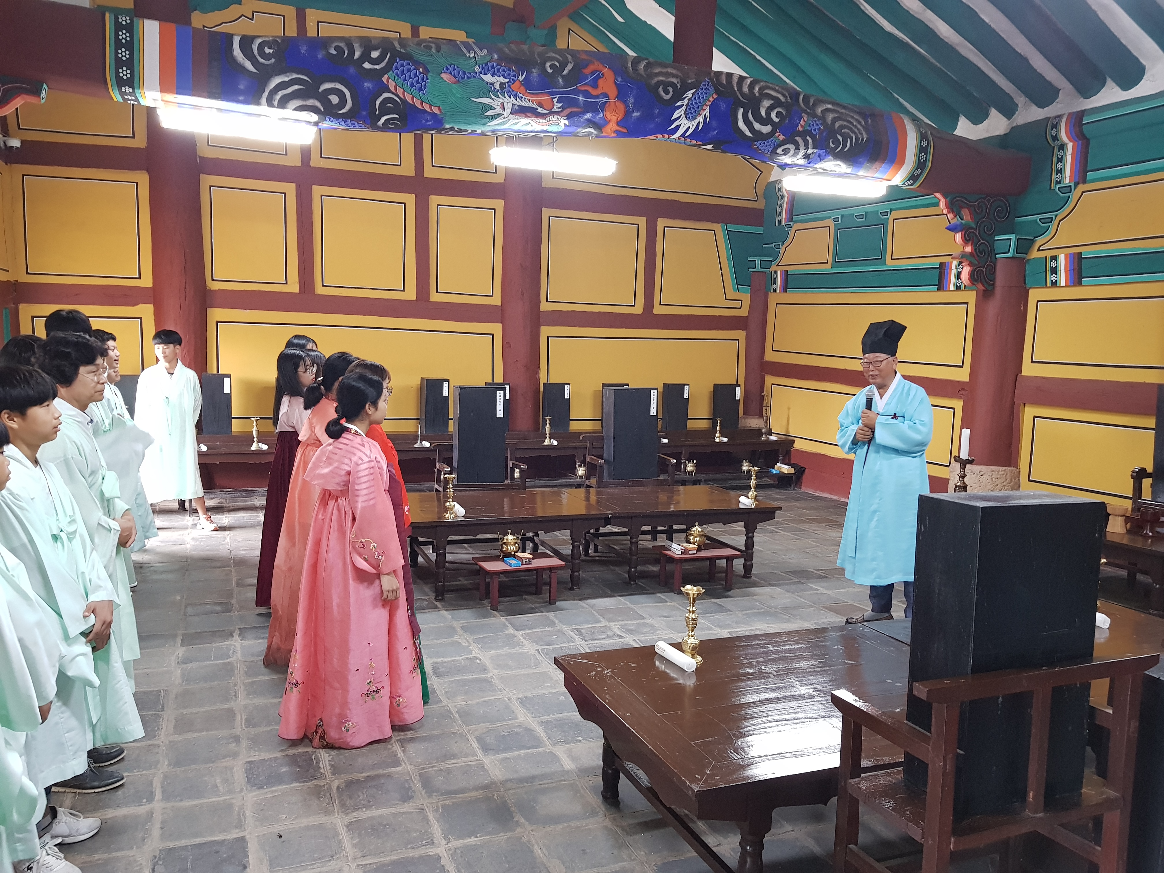 향교 명륜당에서 선비들과 함께할 최재남 전교님(교장 선생님)과 함께 사자소학 한자공부도 해보고, 박종건 유도회장님(학생회장)과, 이강숙선생님과 함께 예절 교육을 진행할거예요.