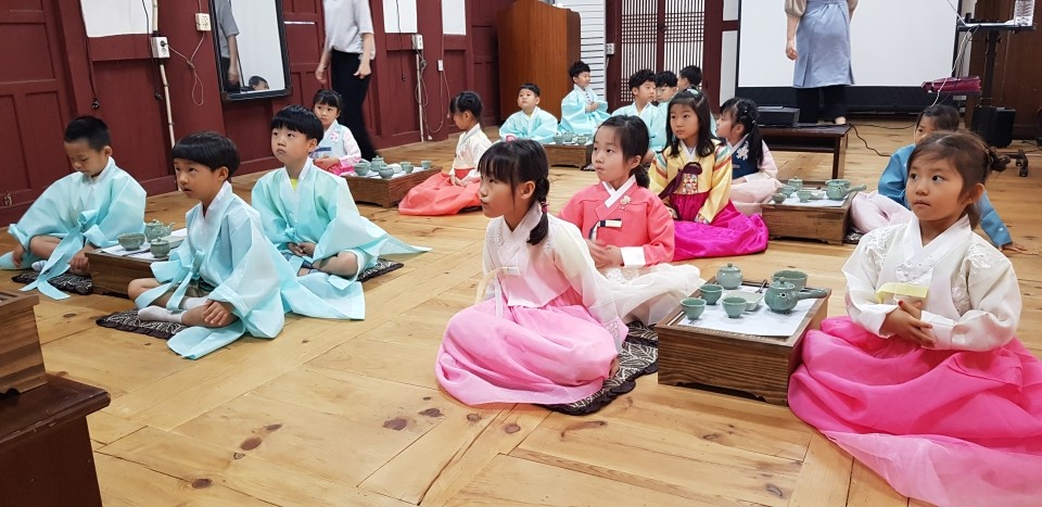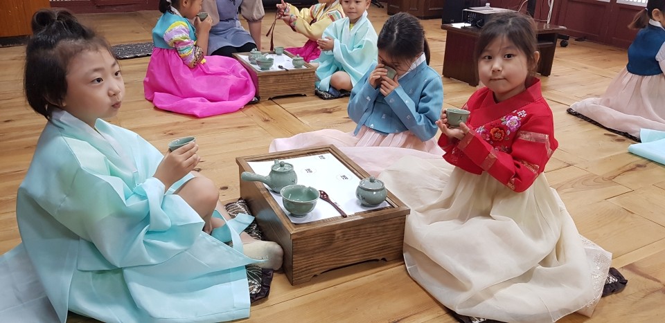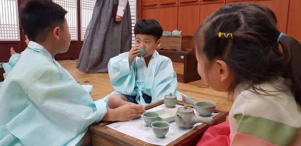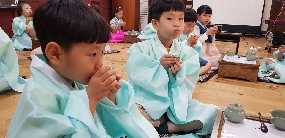 첫교시는 <다례수업>을 해봐요. 우리친구들 지난번에 경험했던 기억을 되살려볼까요?