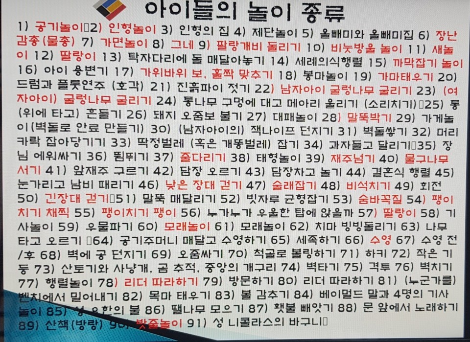 예전 아이들의 놀이가 그림속에 동그라미 갯수만큼 많았답니다.