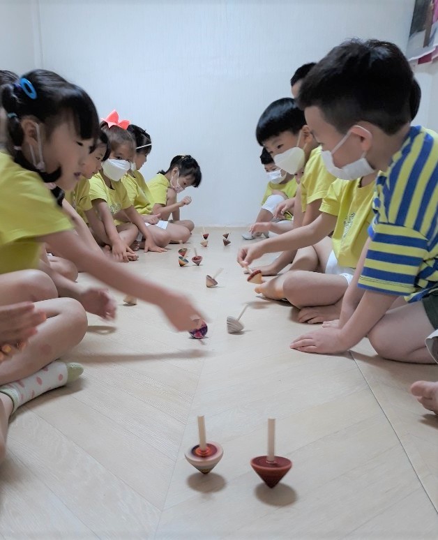 친구들과 팽이시합도 해봐요~! 하나,둘,셋! 짠 ~~~