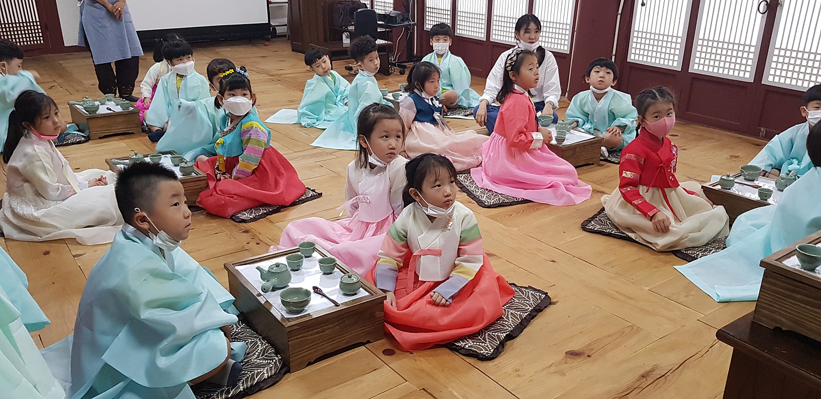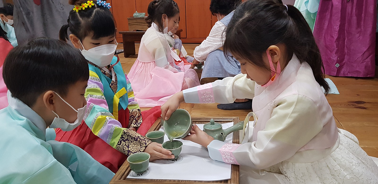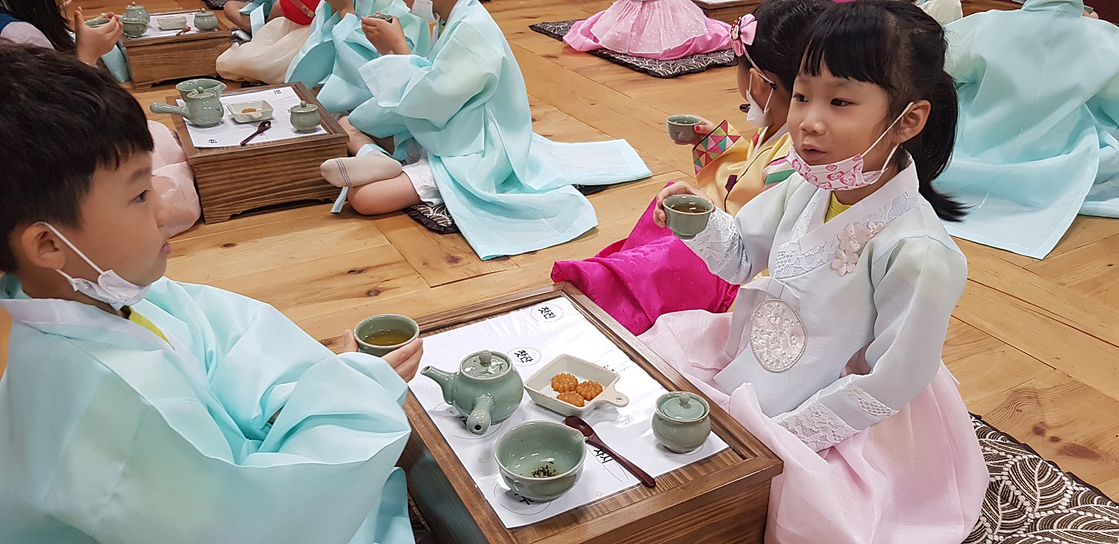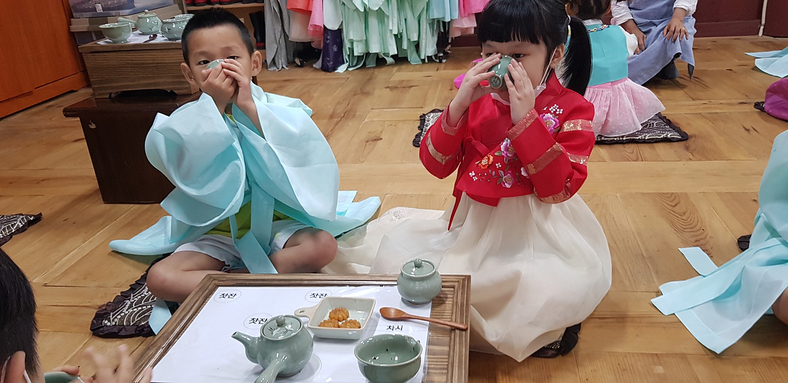 한복과 유복을 입고 다례준비가 다 되었습니다. 친구들의 똘망똘망한 눈을 보니 기분이 좋아지네요