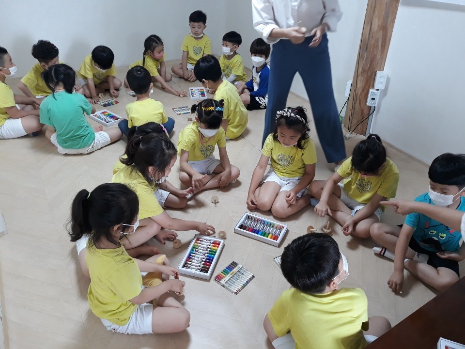 친구들이 팽이에 꾸며봐요. 색으로 알록달록 각자의 취향대로~