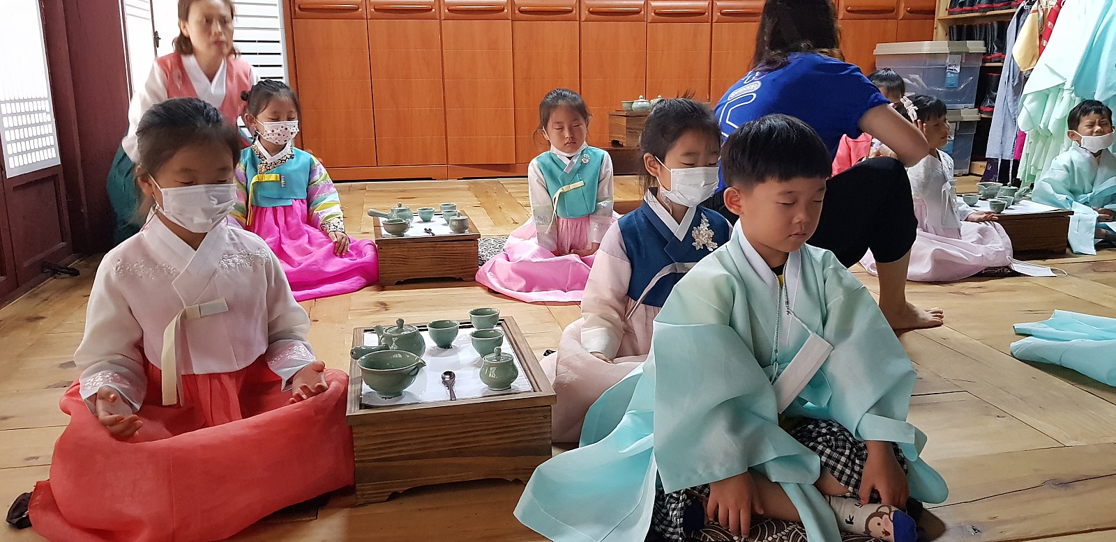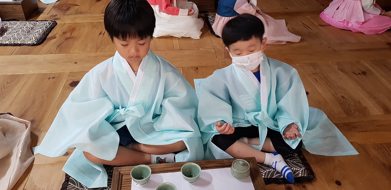 오늘은 다례를 하기전에 먼저 '명상의 시간'을 가져보도록 할게요. 이렇게 하는 친구들이 7세라구요??? 큰 형님 같네요.