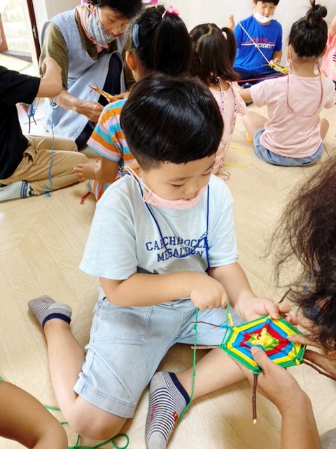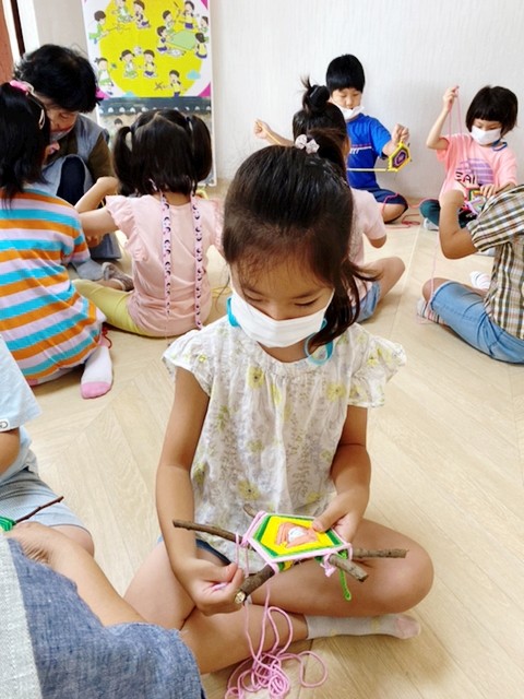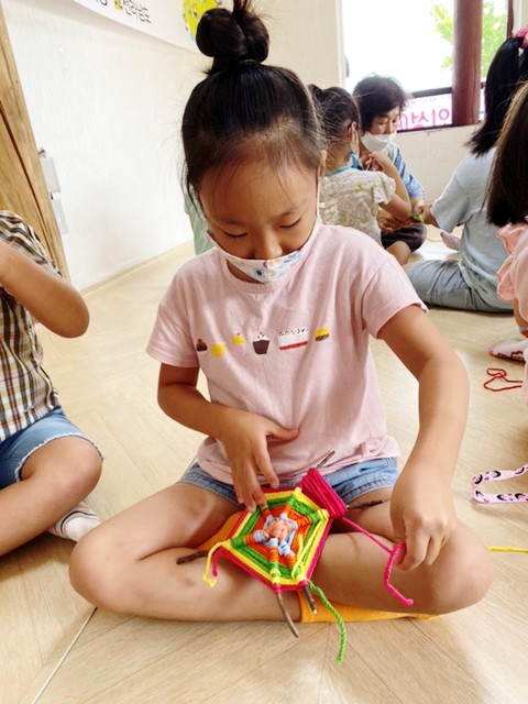 친구들이 직접 짜는 인디언드림캐처는 집에가져가서 잘 걸어둘꺼죠?