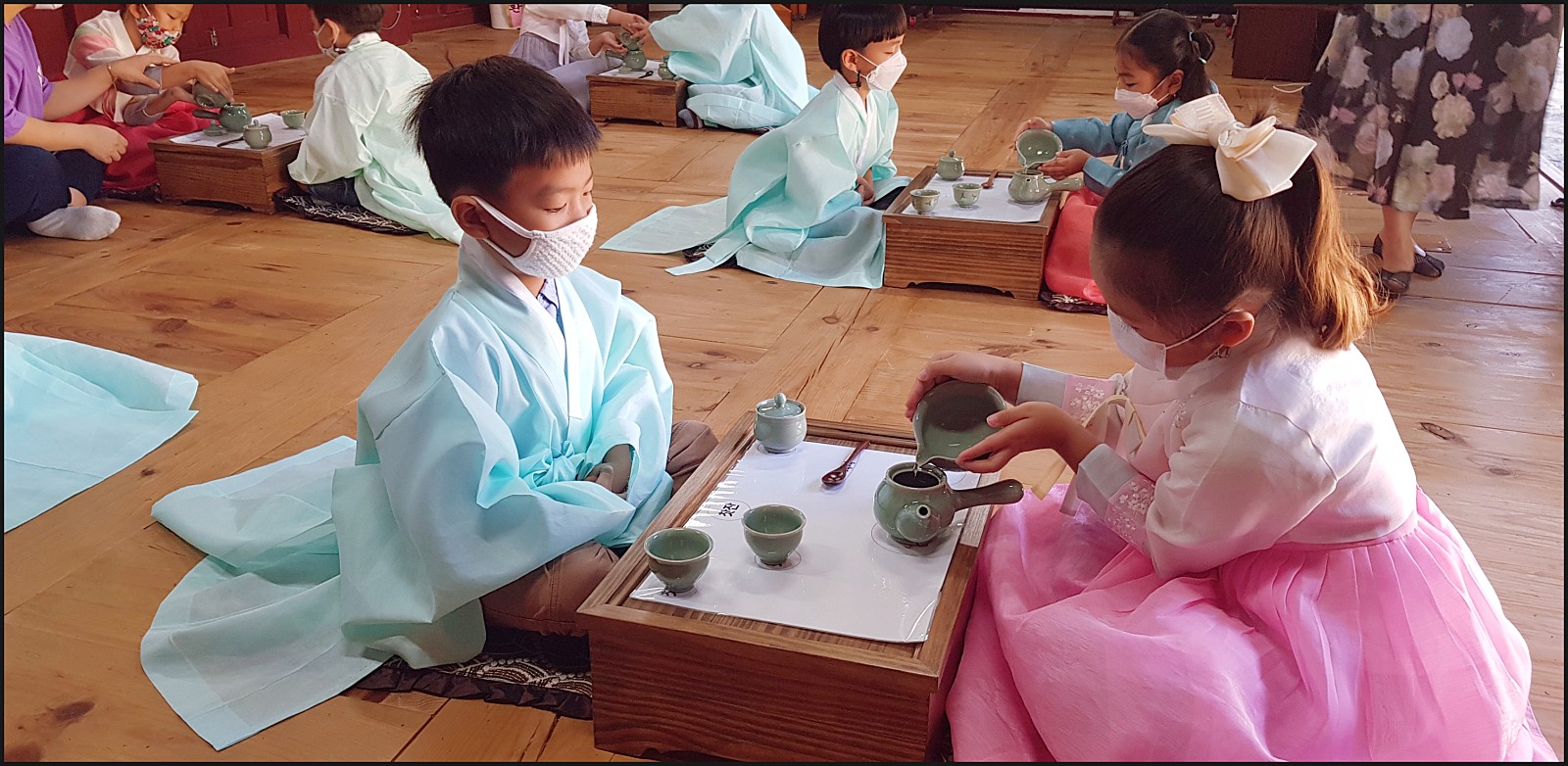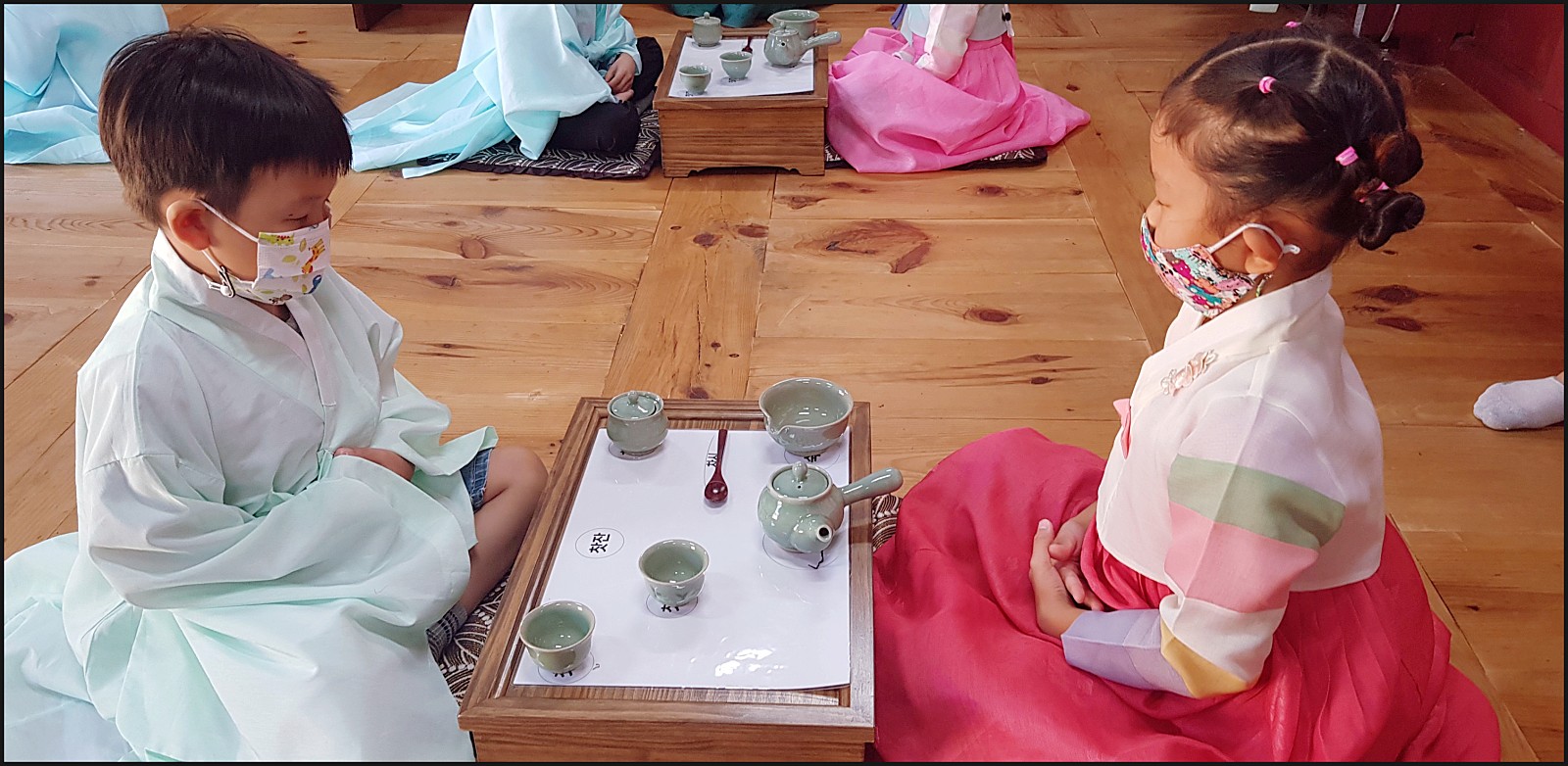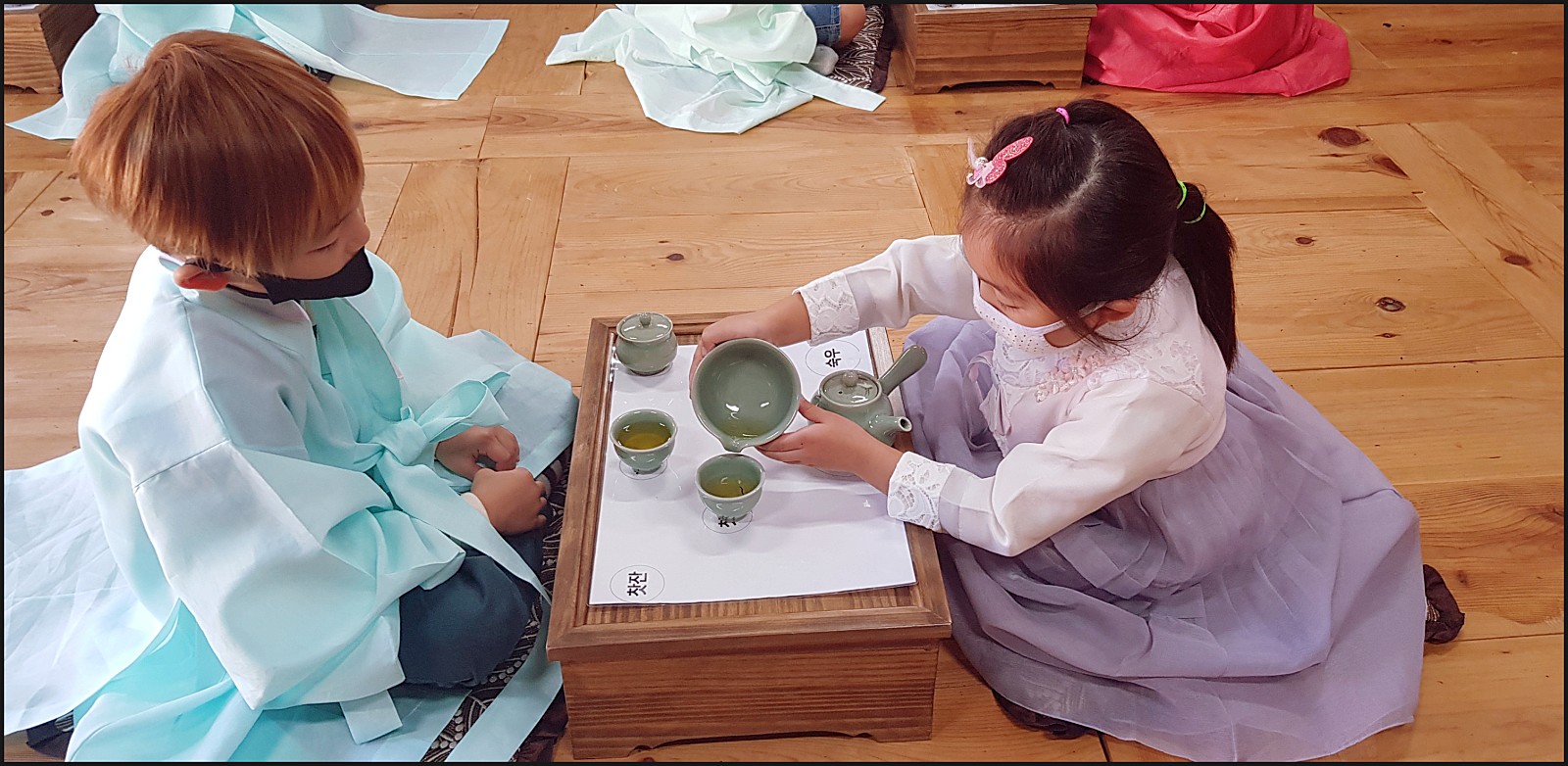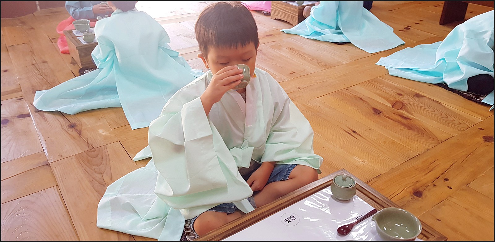 우리 은파어린이집 친구들이 다례체험을 하고있네요. 선생님의 말씀도 잘듣고 너무 이쁜데요