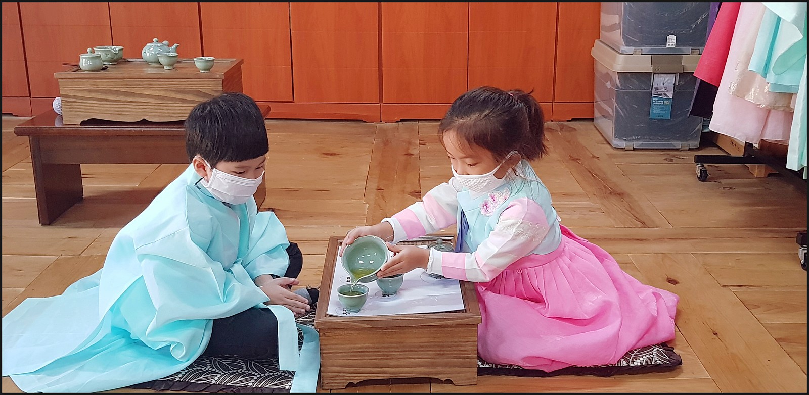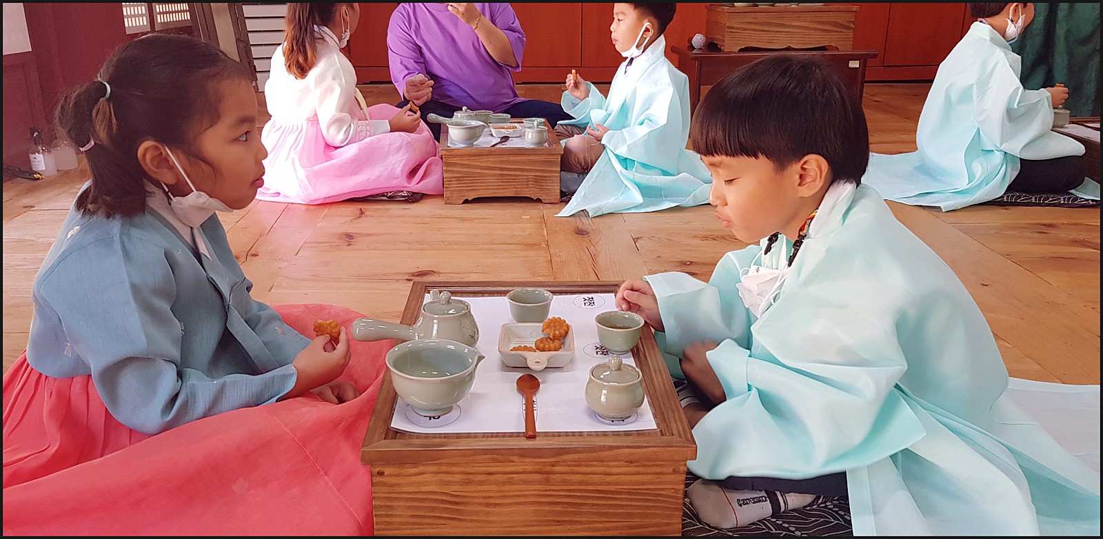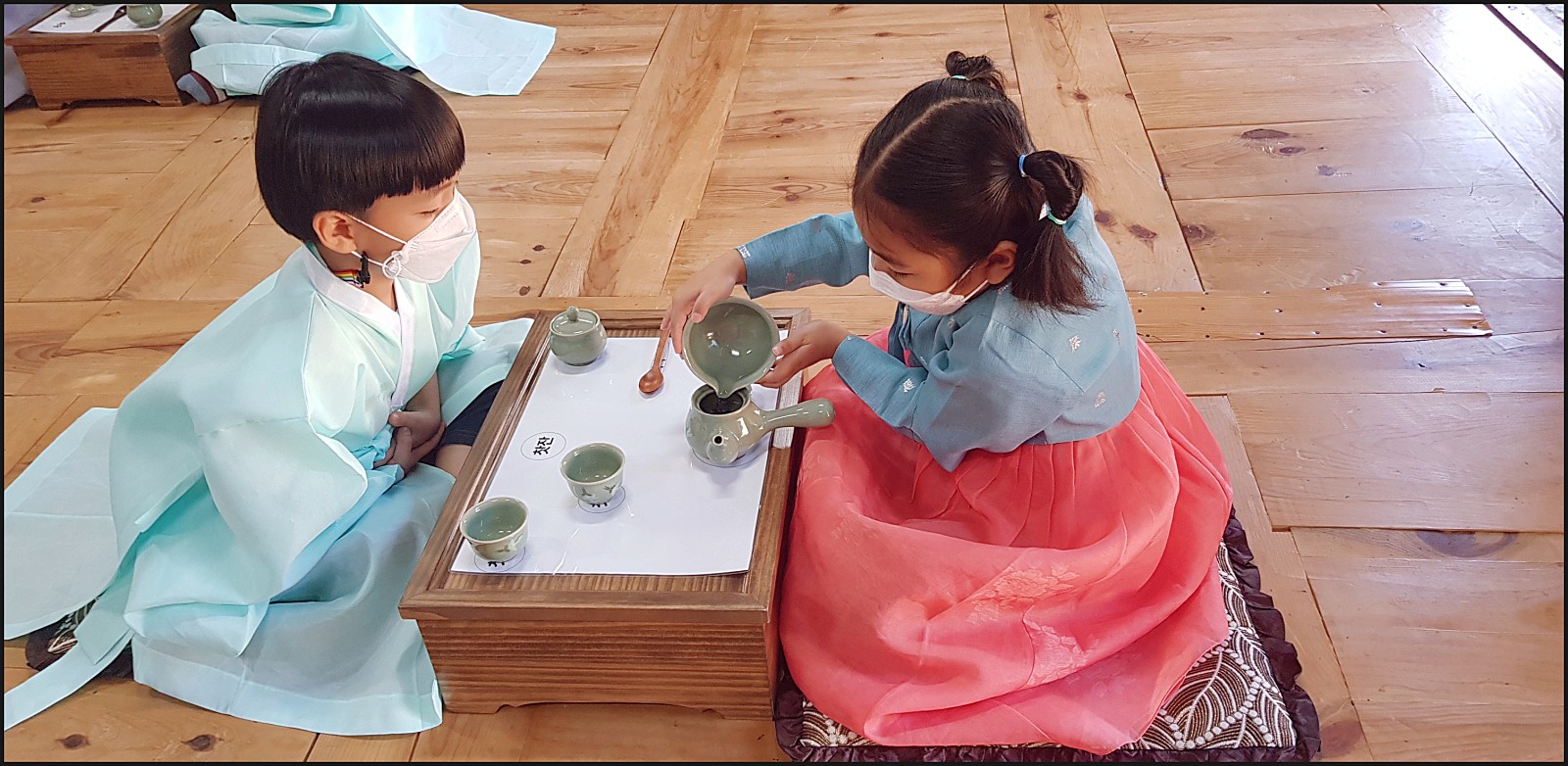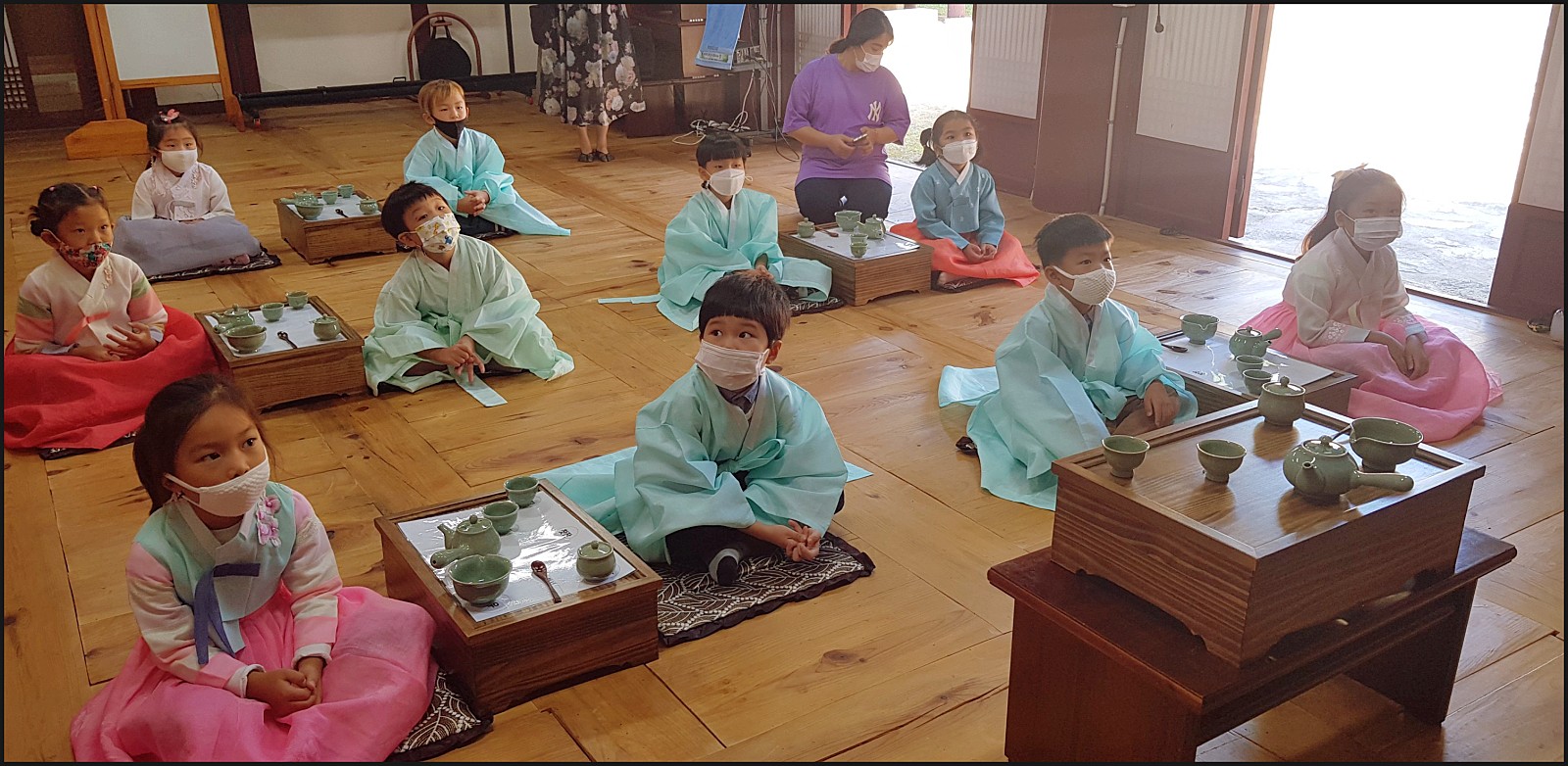 우리 은파어린이집 친구들이 다례체험을 하고있네요. 선생님의 말씀도 잘듣고 너무 이쁜데요