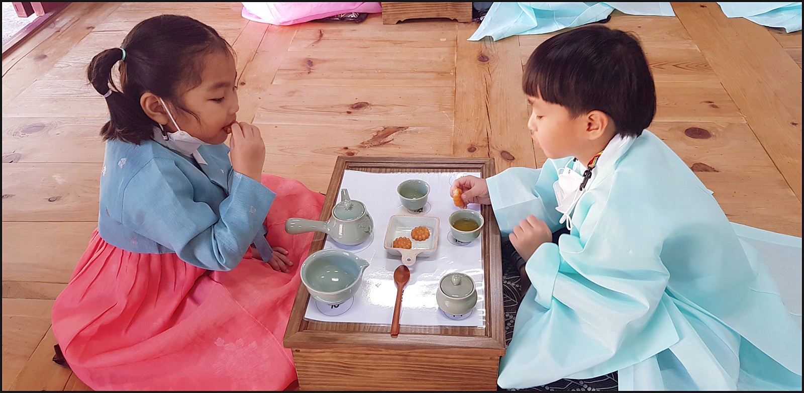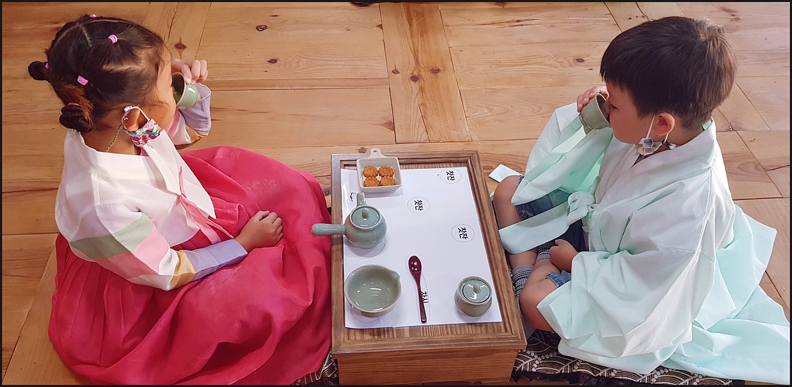 다과와 차를 함께 먹어보아요. 너무 맛있어서 "선생님 더주세요!" 라고 하네요 ㅎㅎ