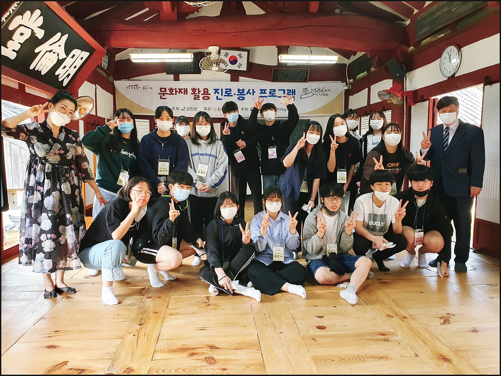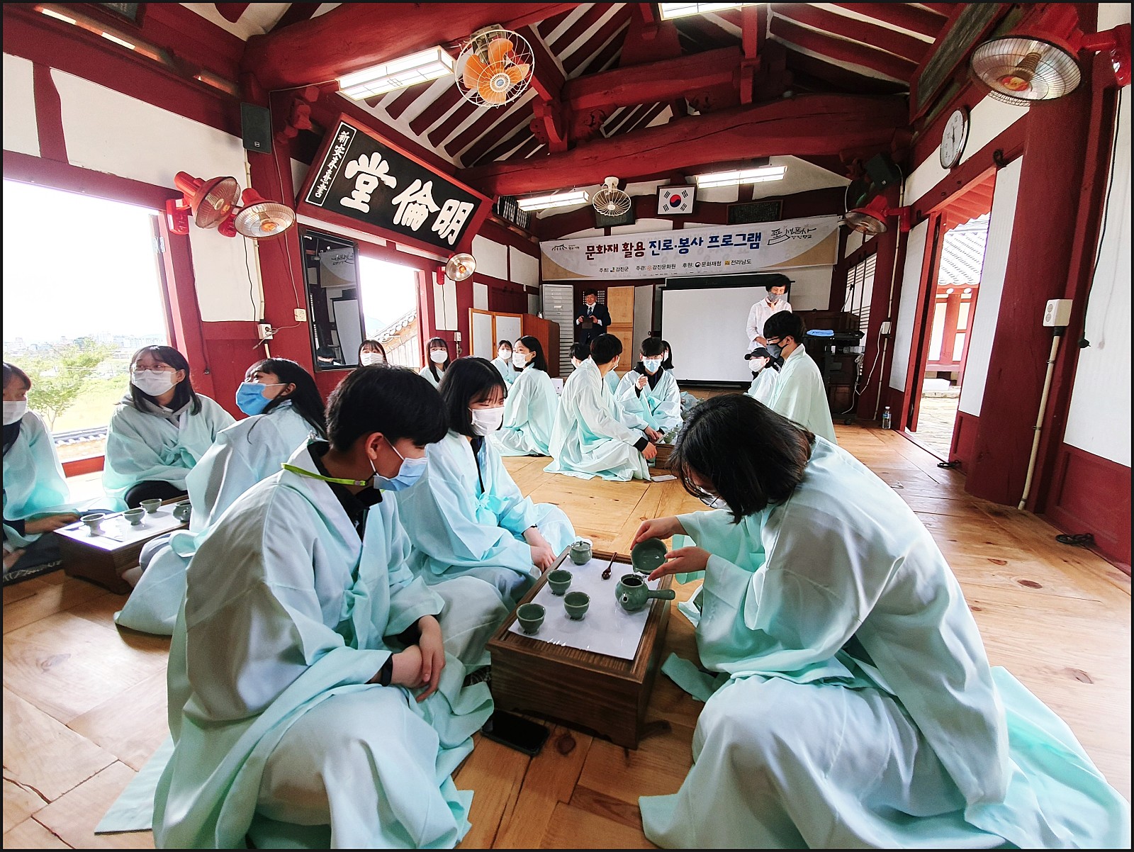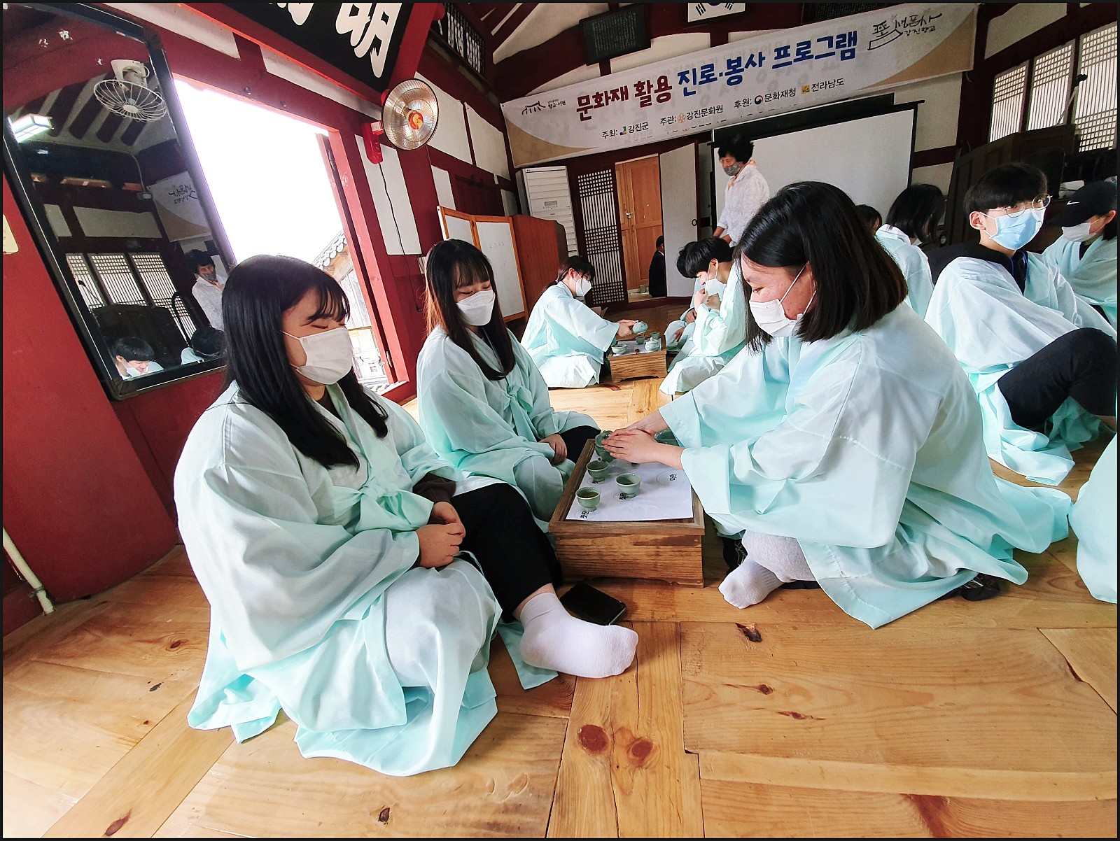 우리 강진고등학교 학생들이 문화재 활용 진로봉사 프로그램을 하러왔네요.