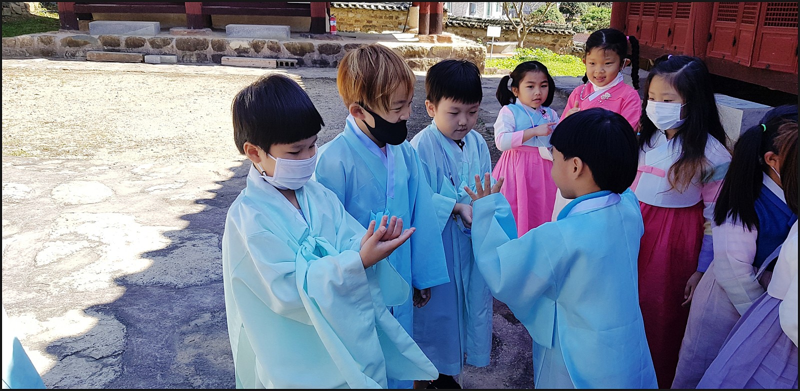 조용하던 강진향교에 우리 예쁜 은파어린이집 친구들이 왔어요.