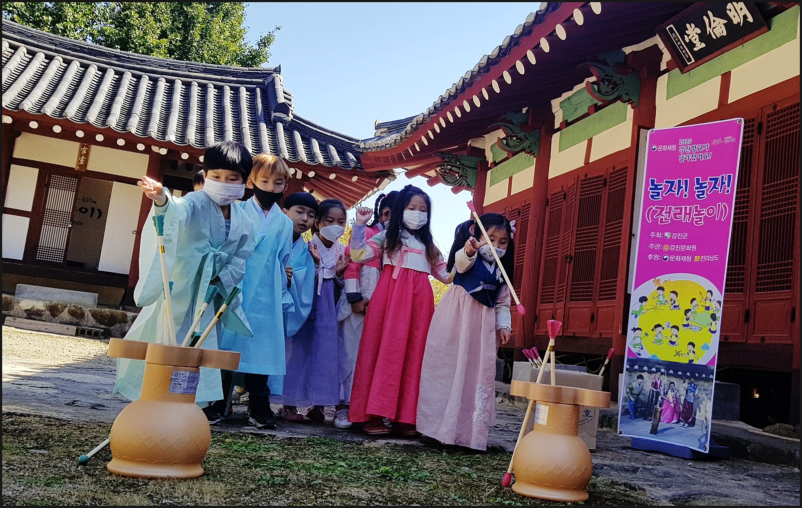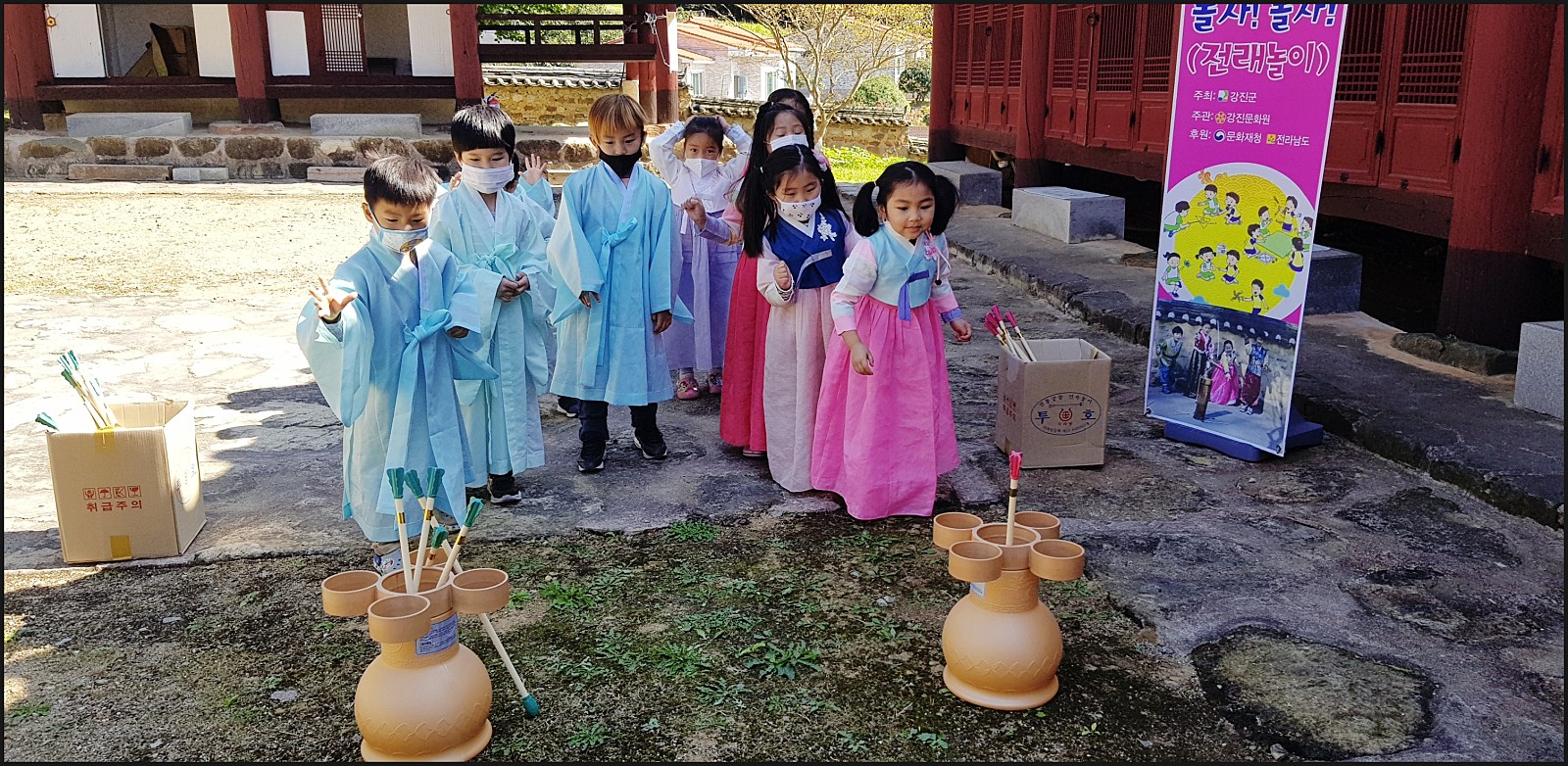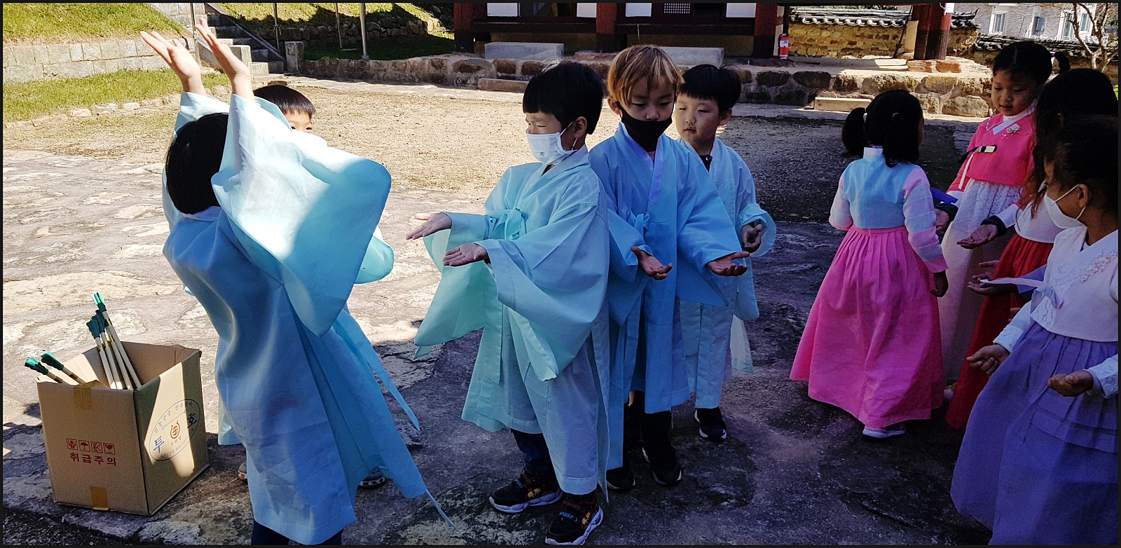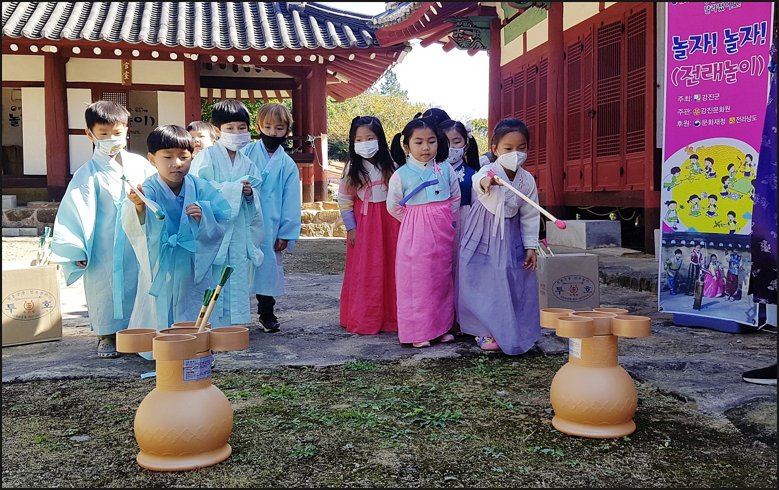우리 은파 어린이집 친구들이 유복과한복을 입고 투호놀이를 할거에요.
