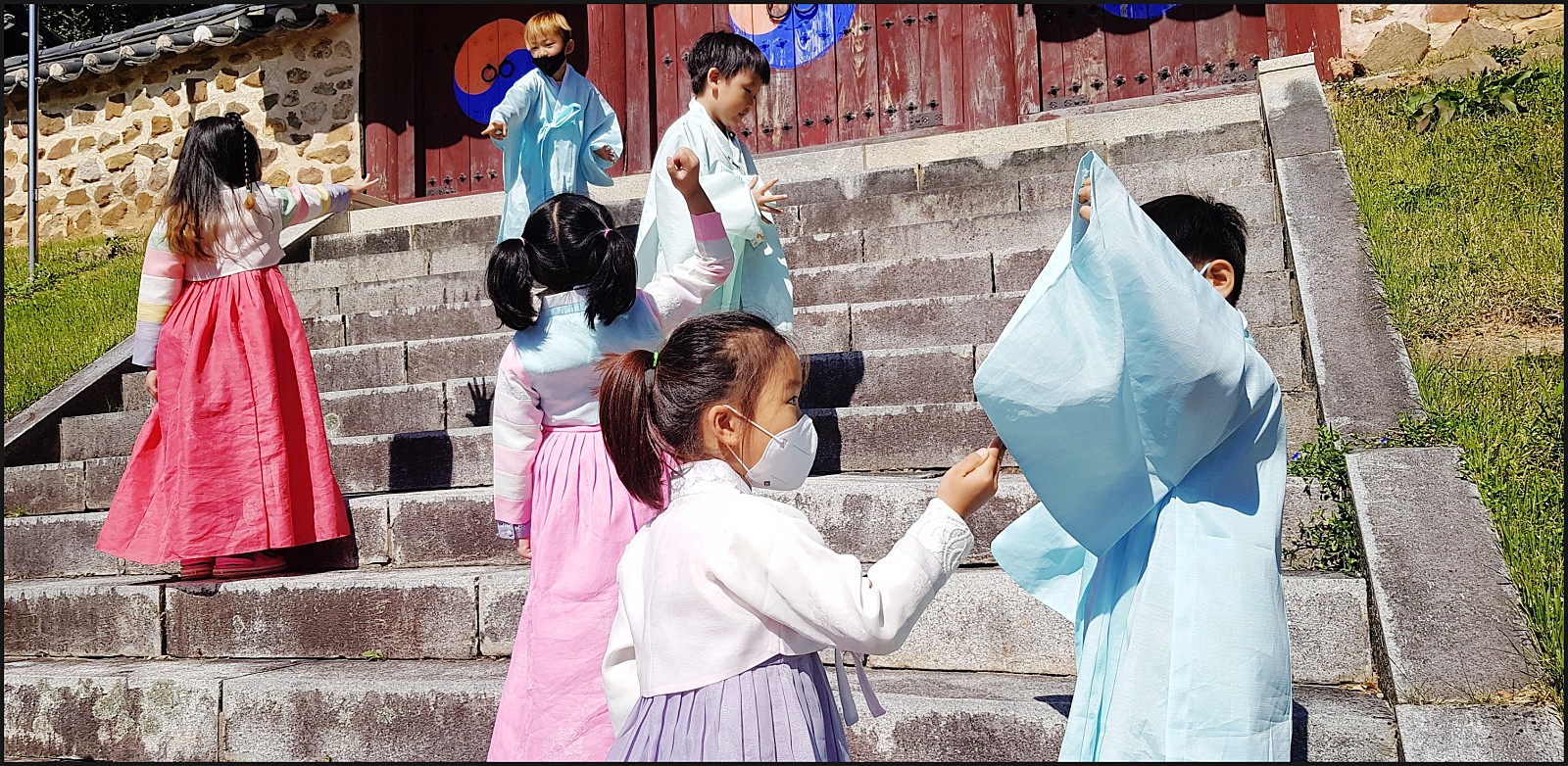 중간중간 쉬는시간에는 계단에서 친구들과 같이 가위바위보 놀이도 하면서