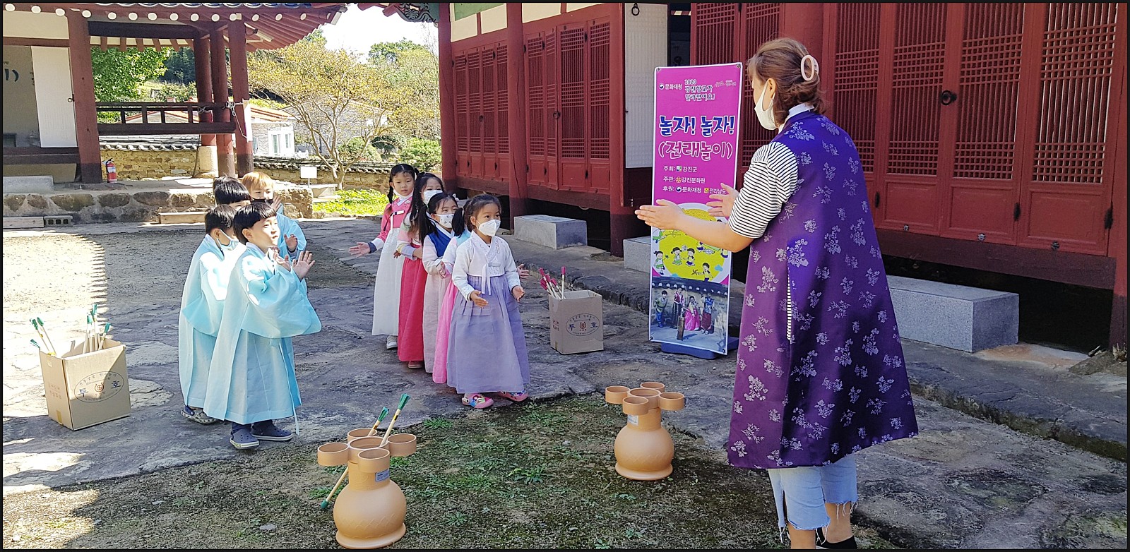 우리 은파 어린이집 친구들이 유복과한복을 입고 투호놀이를 할거에요.