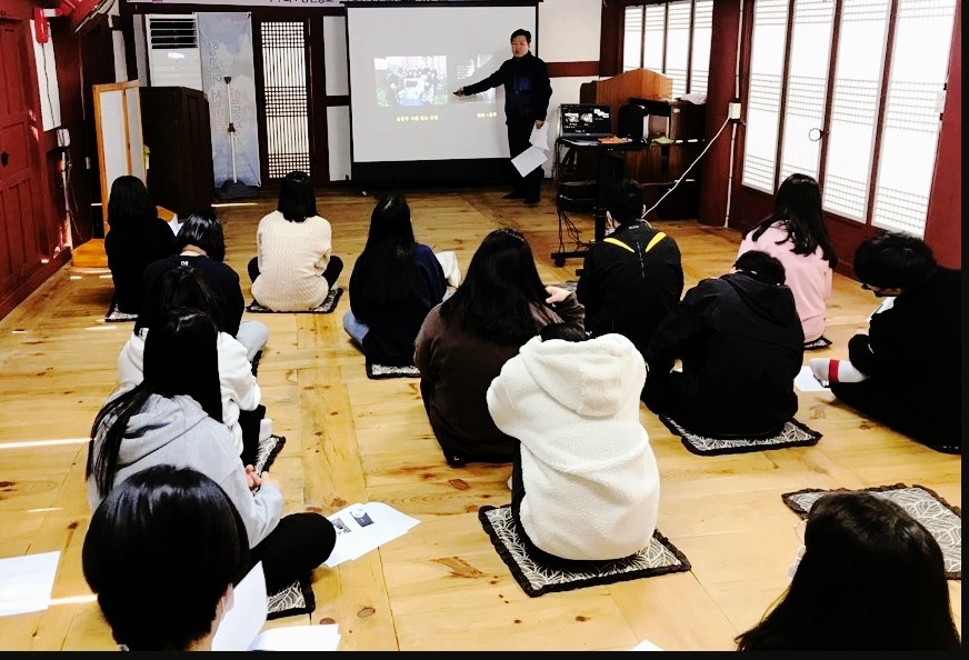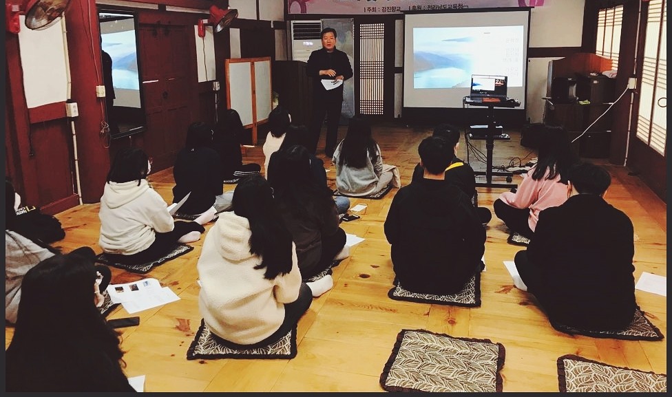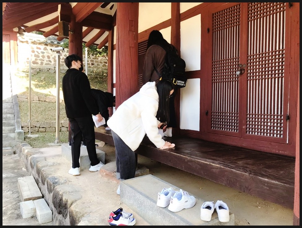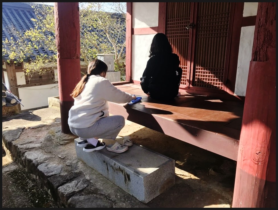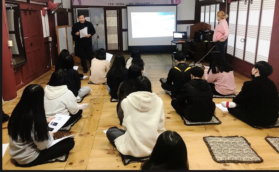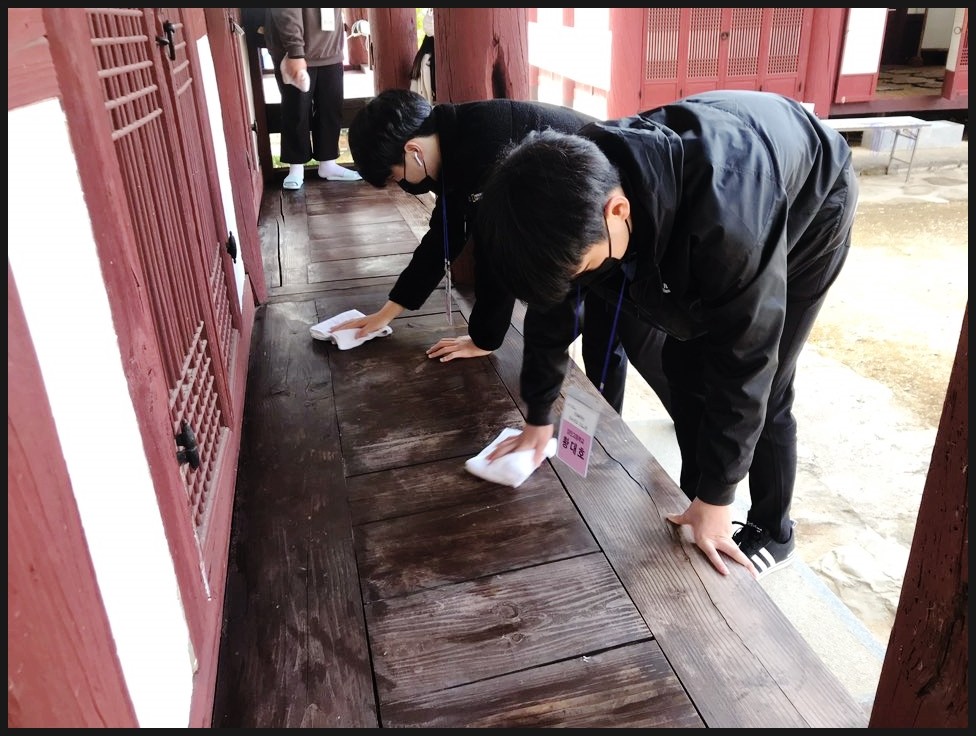 쌀쌀한 날씨에도 우리 강진고등학교 학생들이 찾아와서 강진향교 마룻바닥을