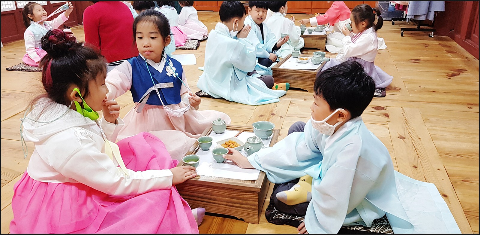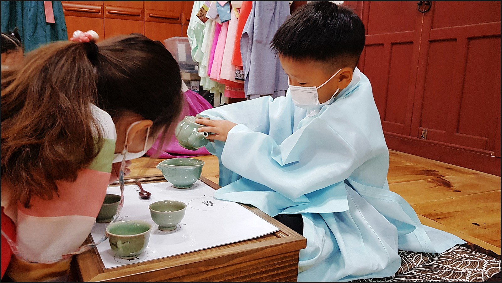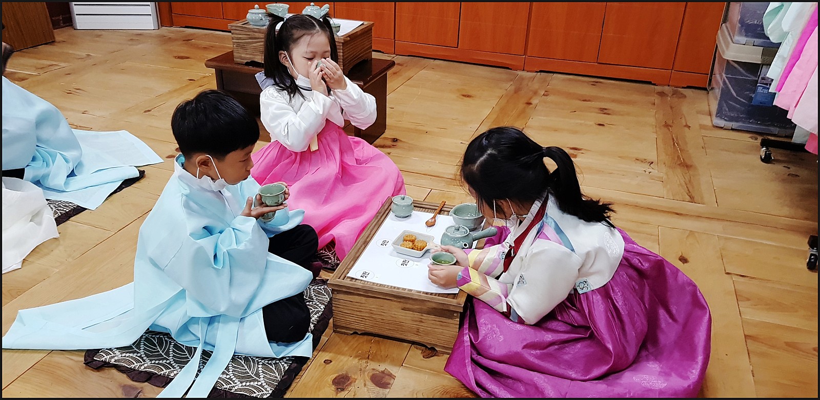 유복과 한복도 알아서 잘입고, 다례체험도 이제는 스스로 척척! 너무 잘한답니다.