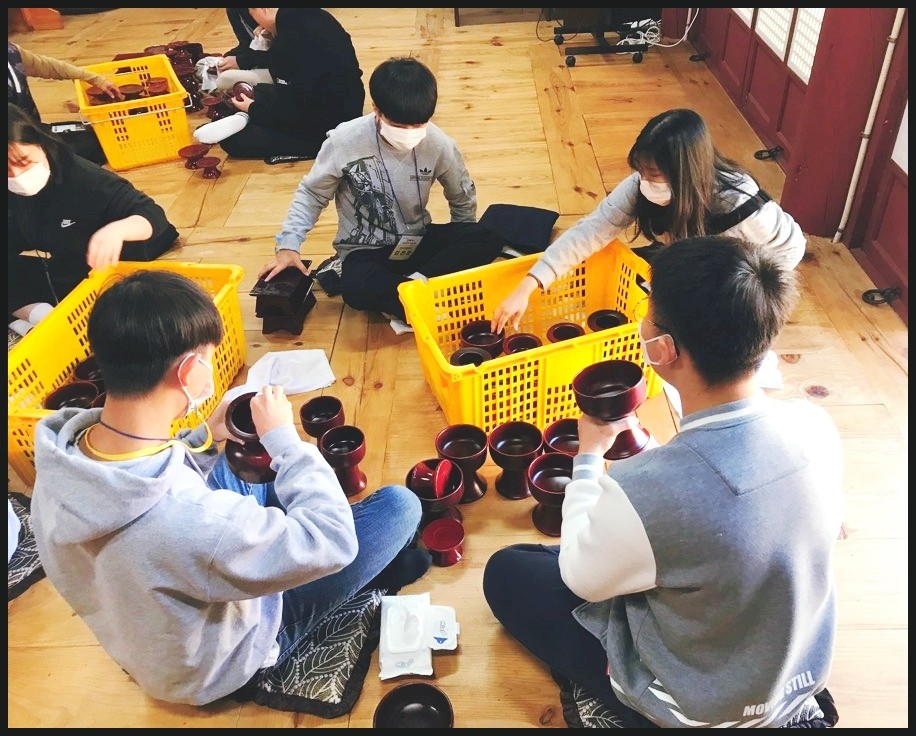 강진고등학교 학생들이 강진향교와서 봉사활동인 제기도 친구들과 함께 너무나 열심히, 깨끗하게 닦아줘서