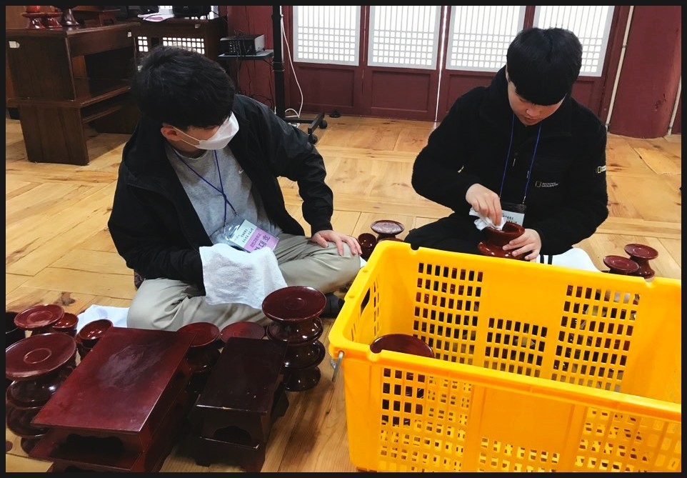 오늘 첫번째시간으로는 봉사활동인 제기를 닦아볼 거예요 얼마나 잘 닦는지 봐볼까요?