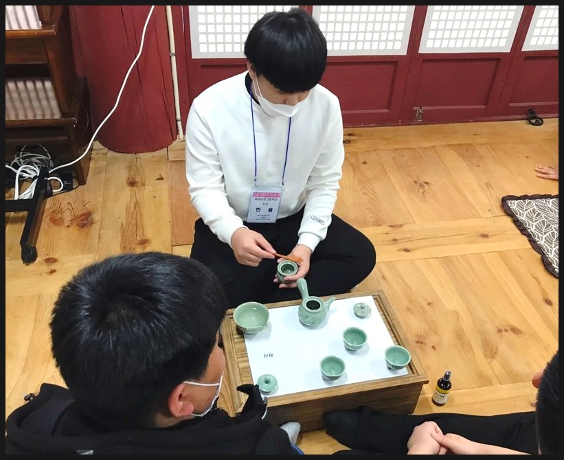 강진향교에서 다례체험을 하면서 차 예절도 배우고 맛있는 다과와 함께 차도 마시고,