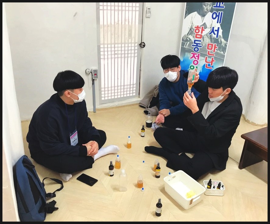 동재와 서재로 나눠서 손소독제 만들기 체험을 진행했어요.