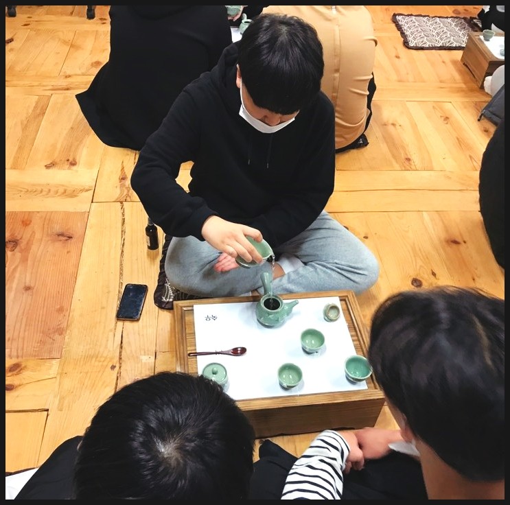 강진향교에서 다례체험을 하면서 차 예절도 배우고 맛있는 다과와 함께 차도 마시고,