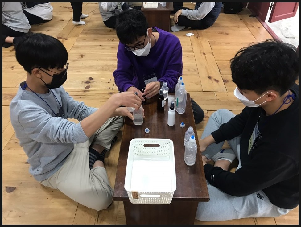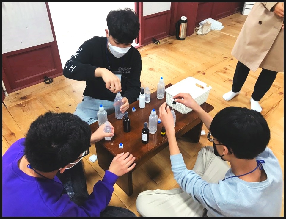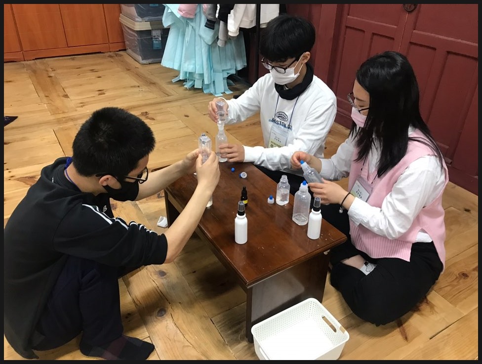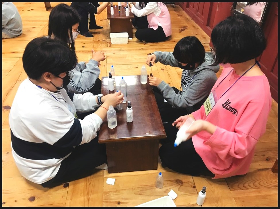친구들과 손소독제를 만들어보면서 이런저런 얘기도 하며, 즐겁게 했어요.