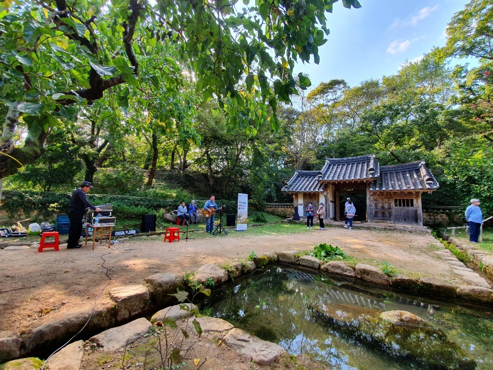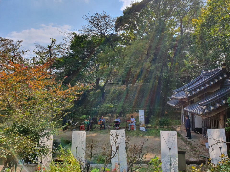 백운동 원림에서 버스킹을 진행했습니다. 백운동의 맑은 공기와 주변에 아름다운 환경이 어울러져 훨씬 예쁘고 멋있네요.