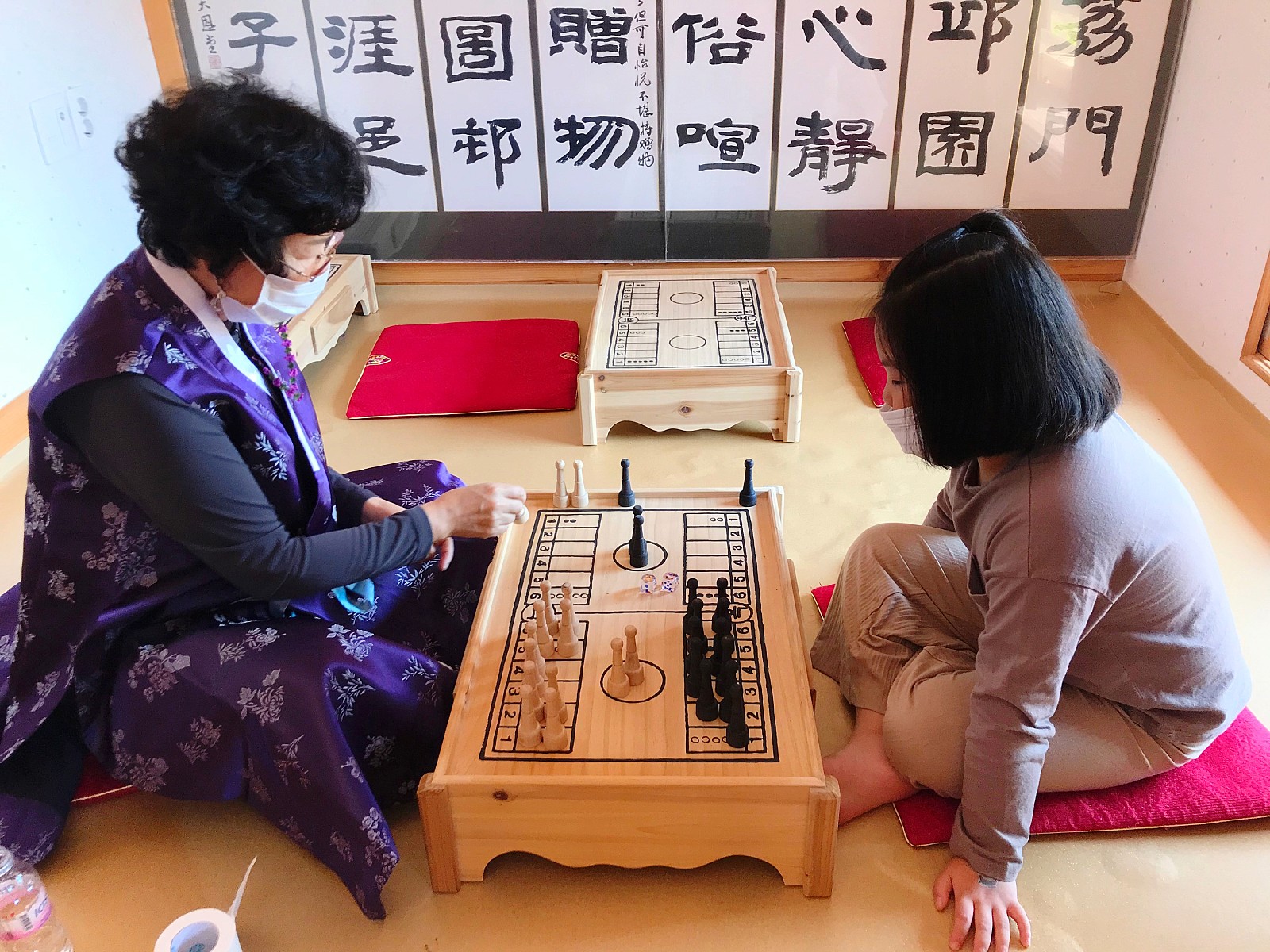 우리 강사님과 같이 쌍륙놀이 해보고있어요. 우리 체험하시분들이 너무 잘하셔서 강사님 께서 깜짝 놀래셨답니다.