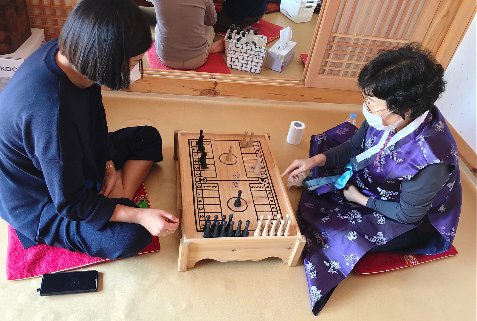 우리 강사님과 같이 쌍륙놀이 해보고있어요. 우리 체험하시분들이 너무 잘하셔서 강사님 께서 깜짝 놀래셨답니다.