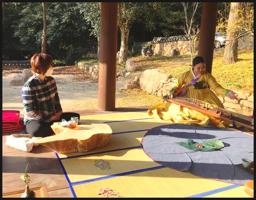 차도 즐기고 가야금 연주도 듣고 이것이야말로 일석이조 아니겠습니까?