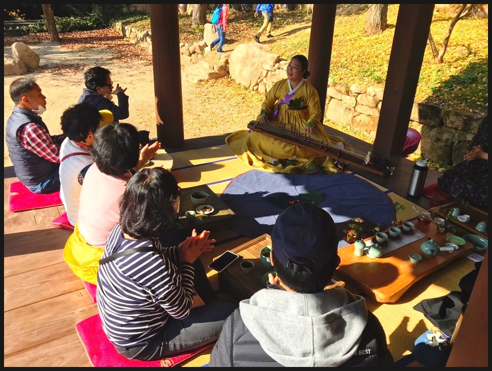 백운동원림의 가을 분위기와 함께 가야금 연주도 들으면서 다과와 차도 즐기시다가 가시는 것도 좋을 거 같습니다.