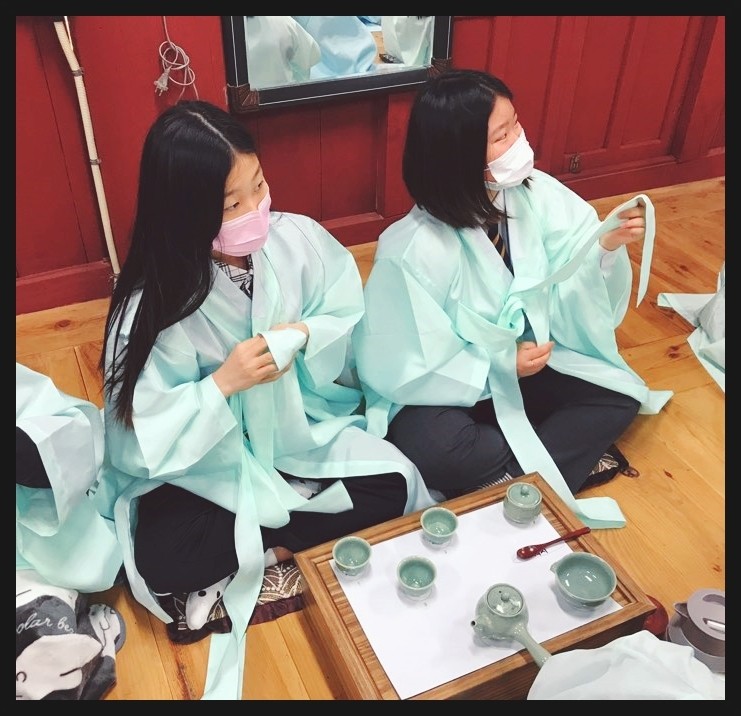대성전을 갔다 왔으니 다례체험을 해볼까요? 유복을 입으니 벌써부터 선비님들이 된 느낌이네요 ㅎㅎ