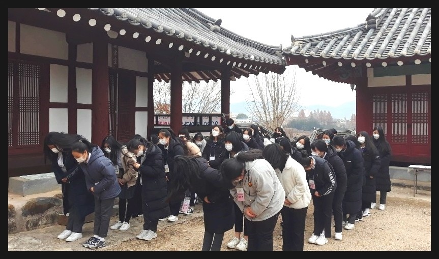 강진여자중학교에서 강진향교를 방문했어요. 반가워요 친구들~~