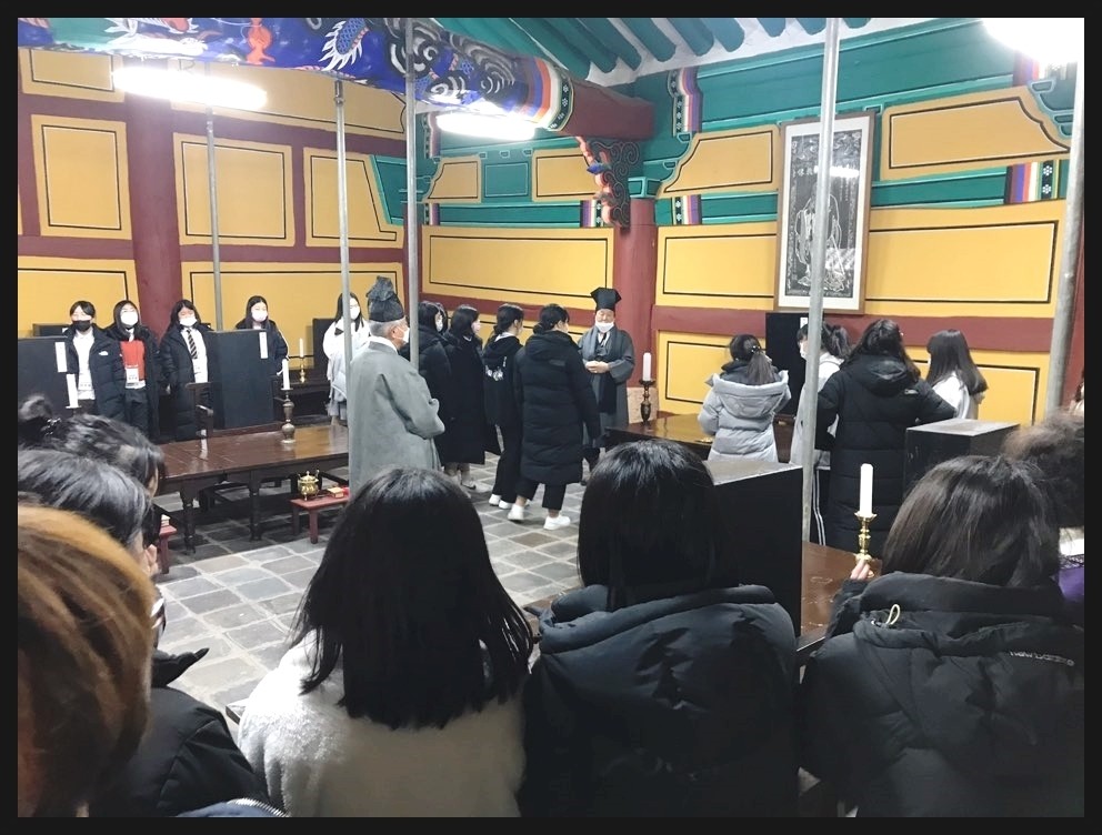 오늘은 강진여자중학교에서 강진향교에 와서 대성전 방문과 다례체험을 했어요.