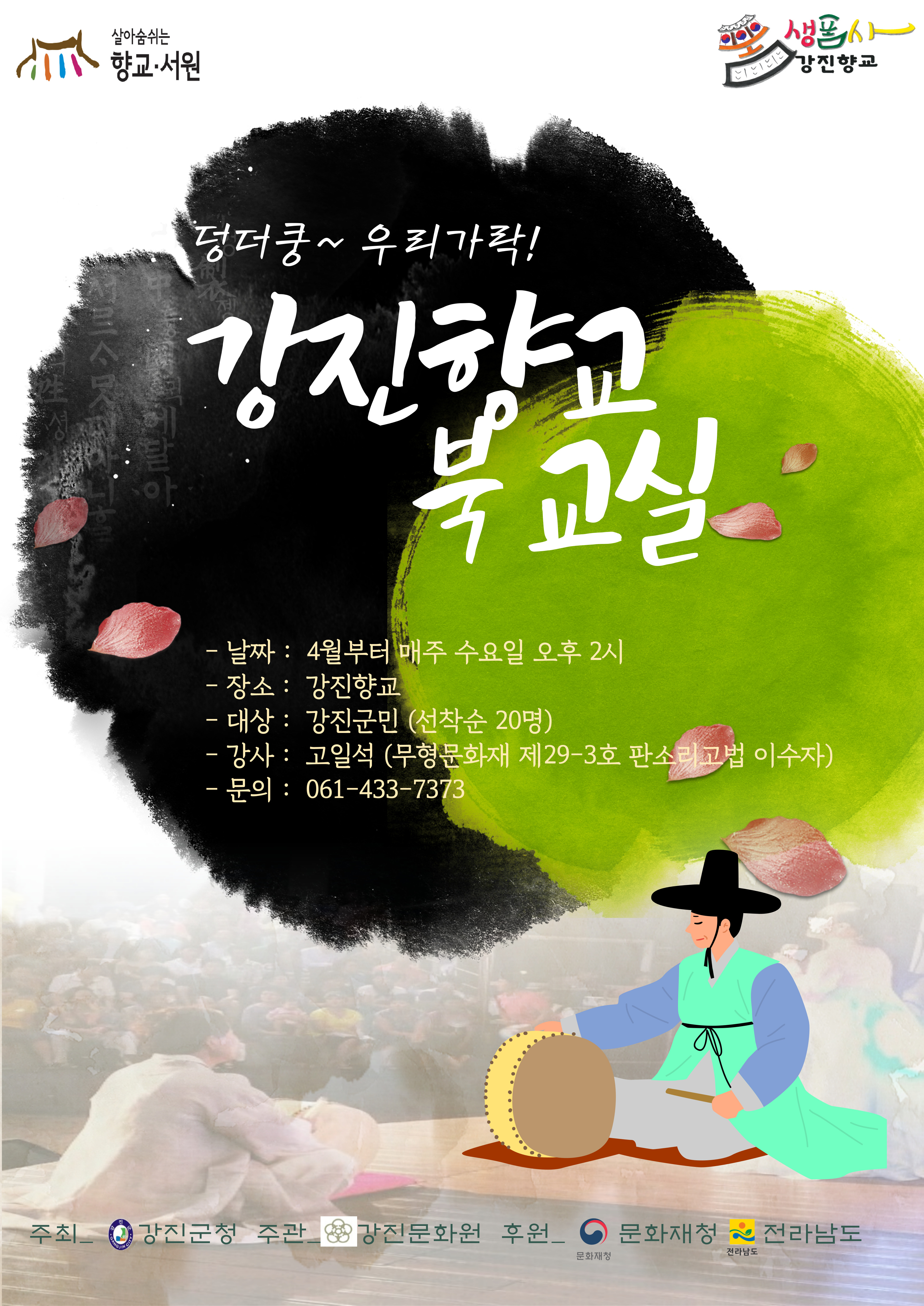 강진문화원은 오는 4월부터 ‘강진향교 북 교실’을 운영합니다.