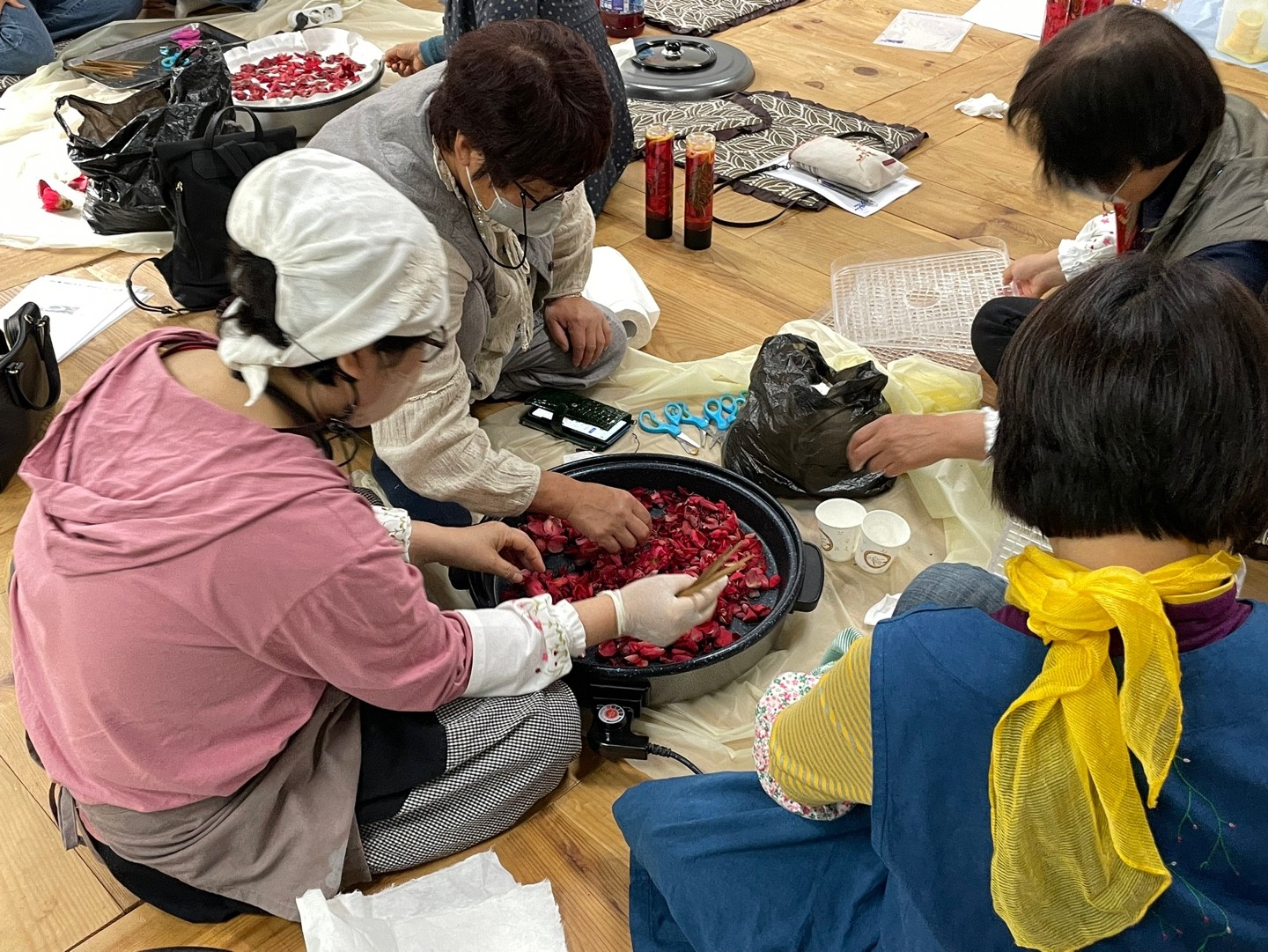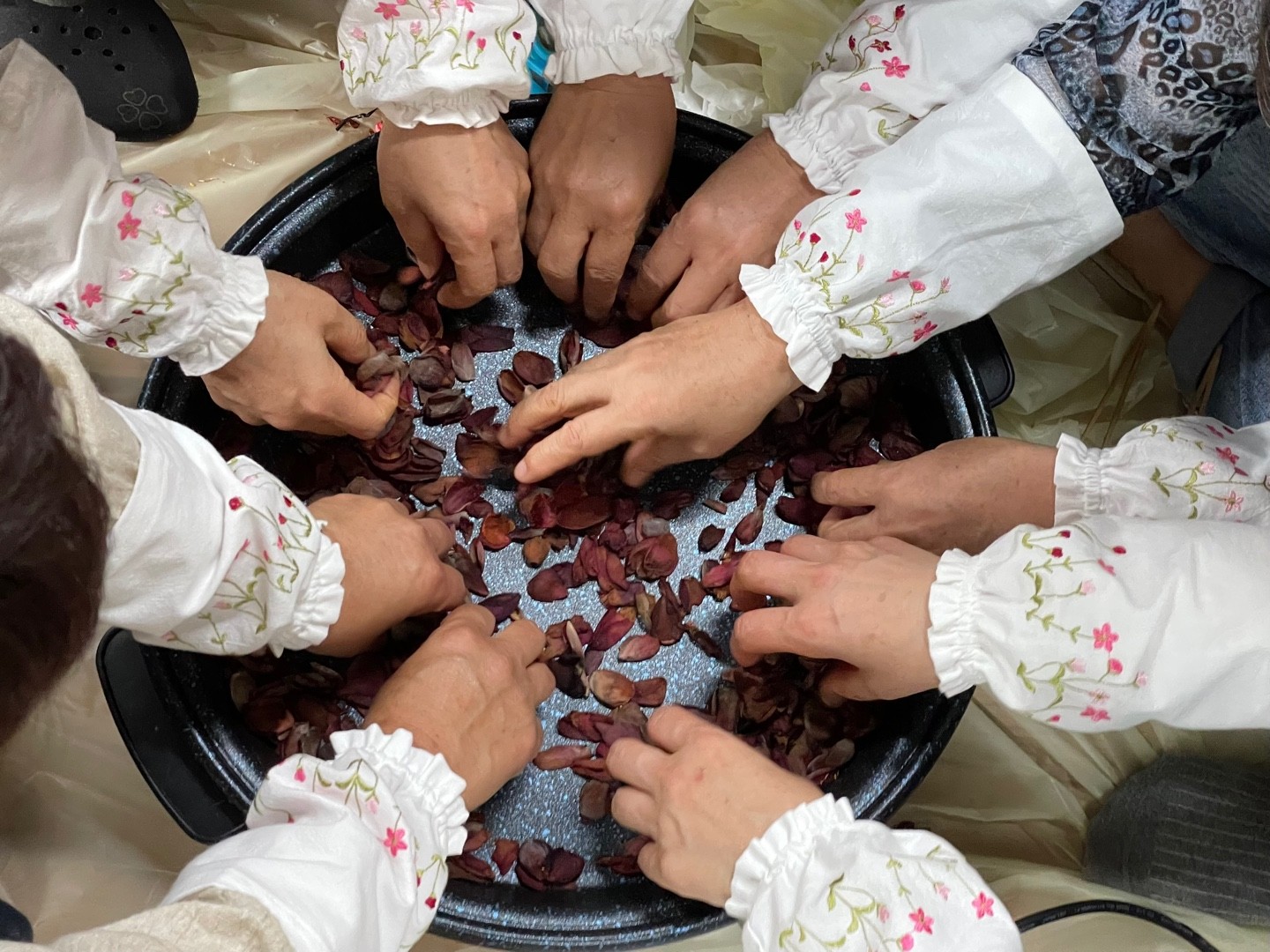 함께 모여 다과를 나누며 꽃차에 대한 이야기도 하고요
