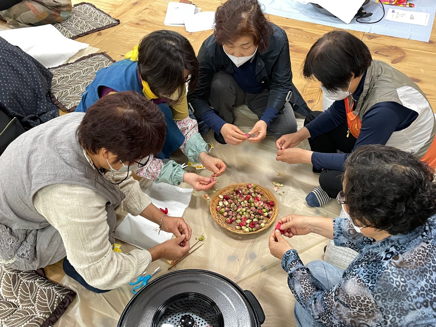 옹기종기 모여서 꽃봉오리를 손질해요.