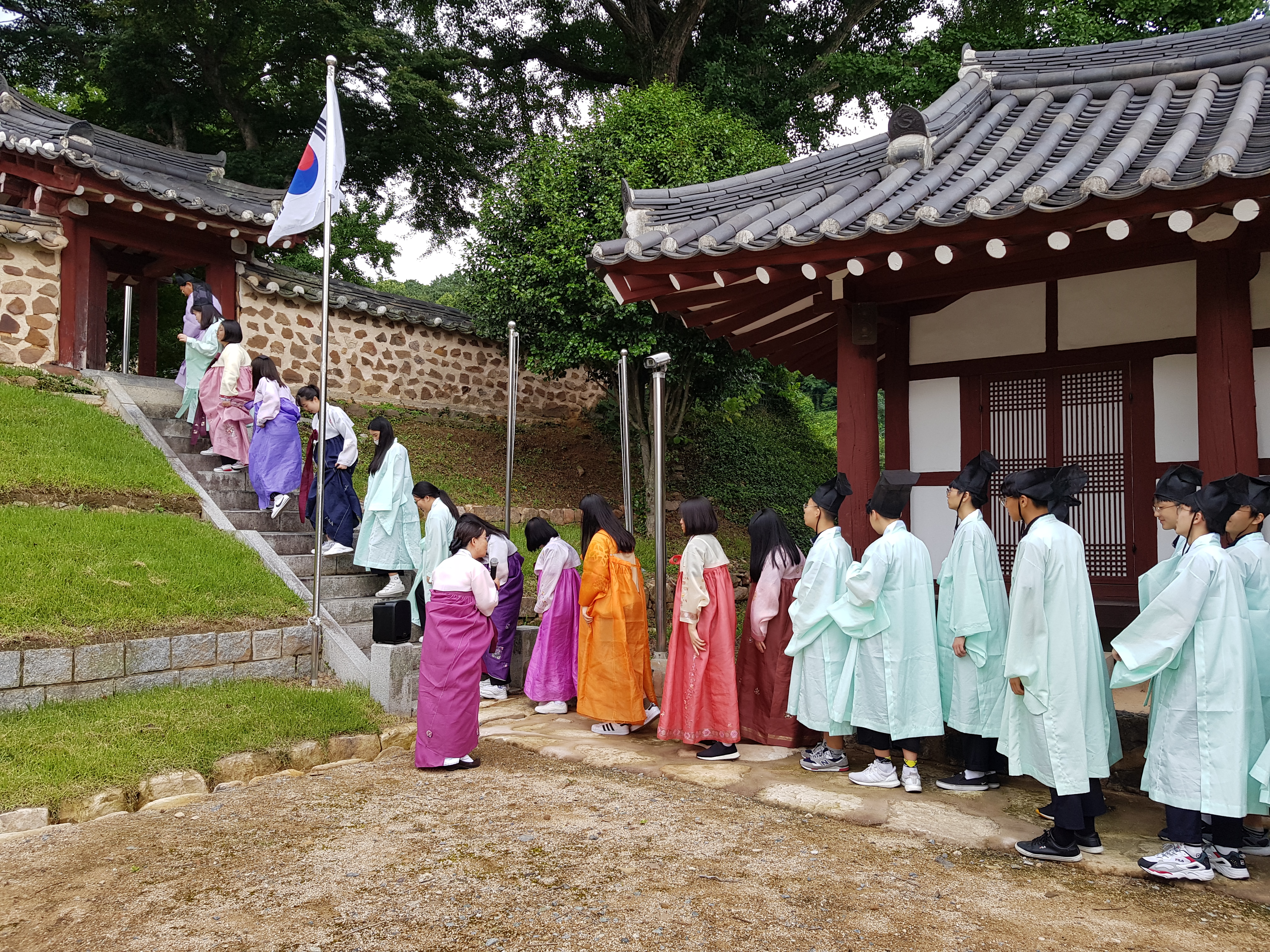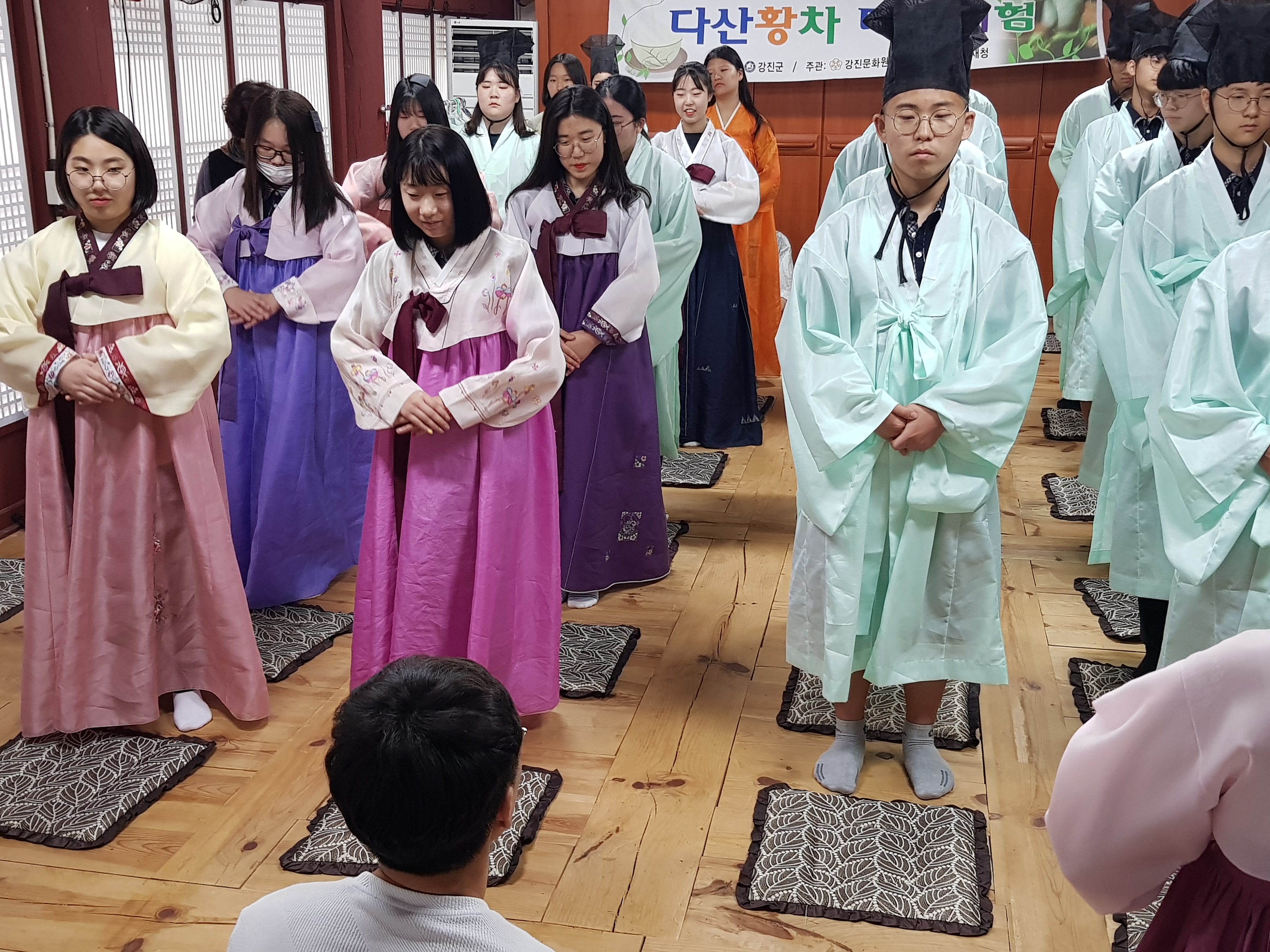 '2019 살아숨쉬는 강진 서원 만들기' 예절교육 체험이예요.