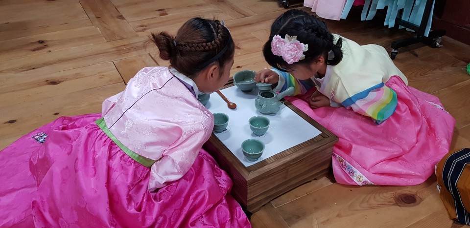 오늘 체험할 프로그램은 전통놀이와 다례체험이예요.