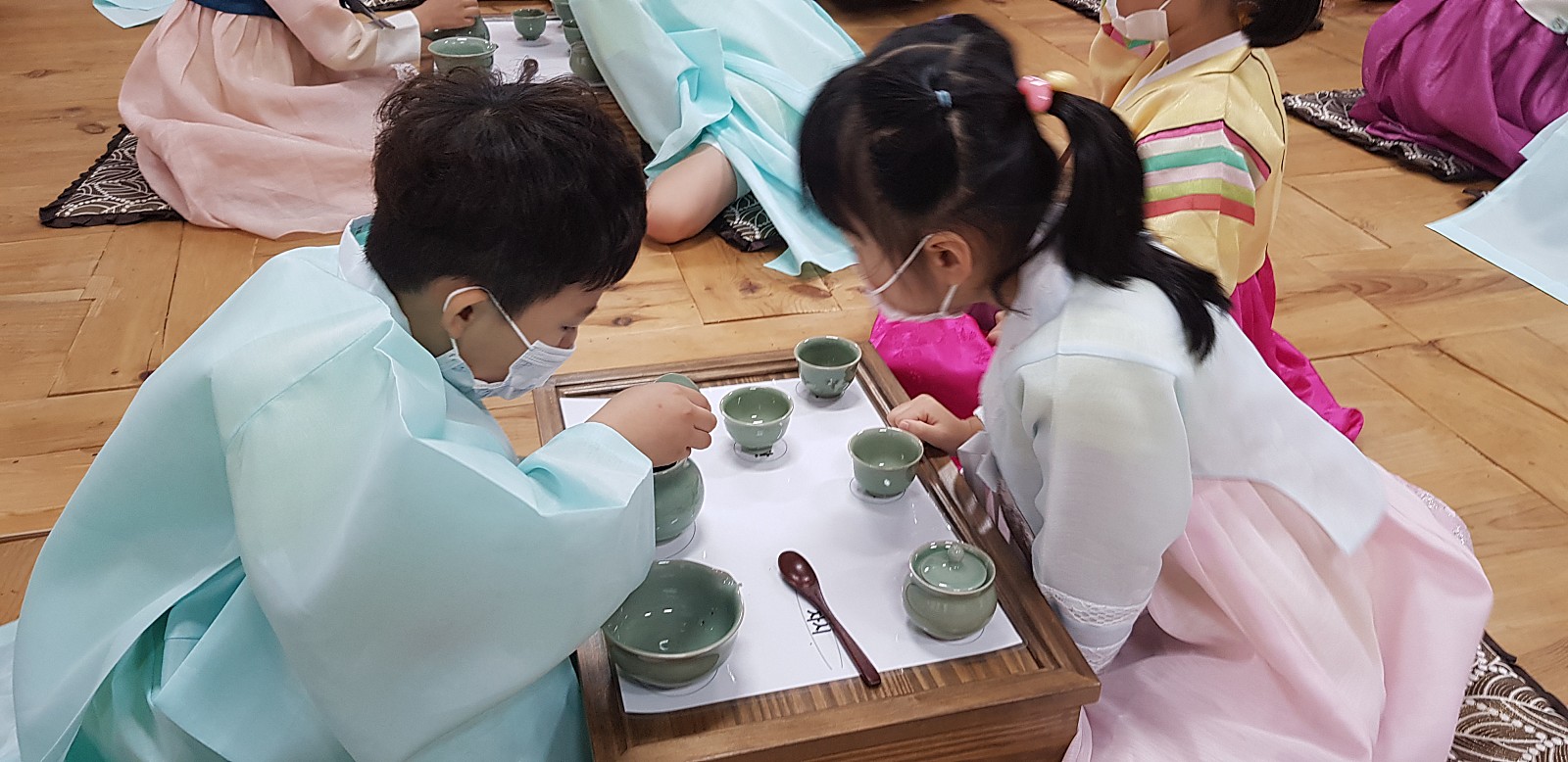 한복과 유복을 입고 다례준비가 다 되었습니다. 친구들의 똘망똘망한 눈을 보니 기분이 좋아지네요