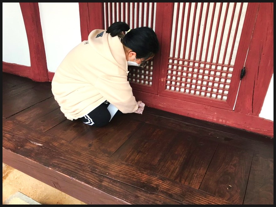 강진고등학교학생들이 방문을 하여 강진향교 동재와 서재를 기름칠이 된 마루를 마른걸레를 이용해서 빛이 나게 닦아주었는데요 얼마나 열심히 닦았던지 마루에 올라가면 미끄러워질 정도였어요 ㅎㅎ