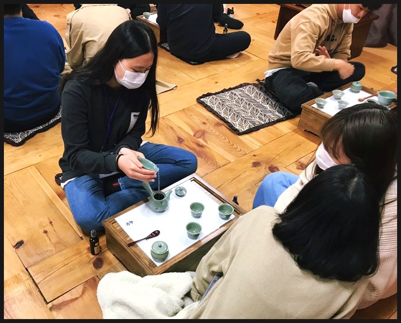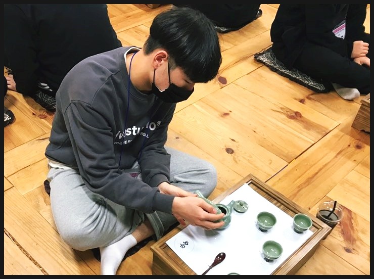 강진향교에서 다례체험을 하면서 차 예절도 배우고 맛있는 다과와 함께 차도 마시고,