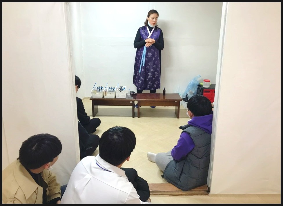 강진향교 명륜당에서 다례체험을 진행할꺼에요. 다들 선생님 말씀에 귀 기울리고 있나요?