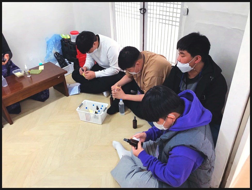 동재와 서재로 나눠서 손소독제 만들기 체험을 진행했어요.