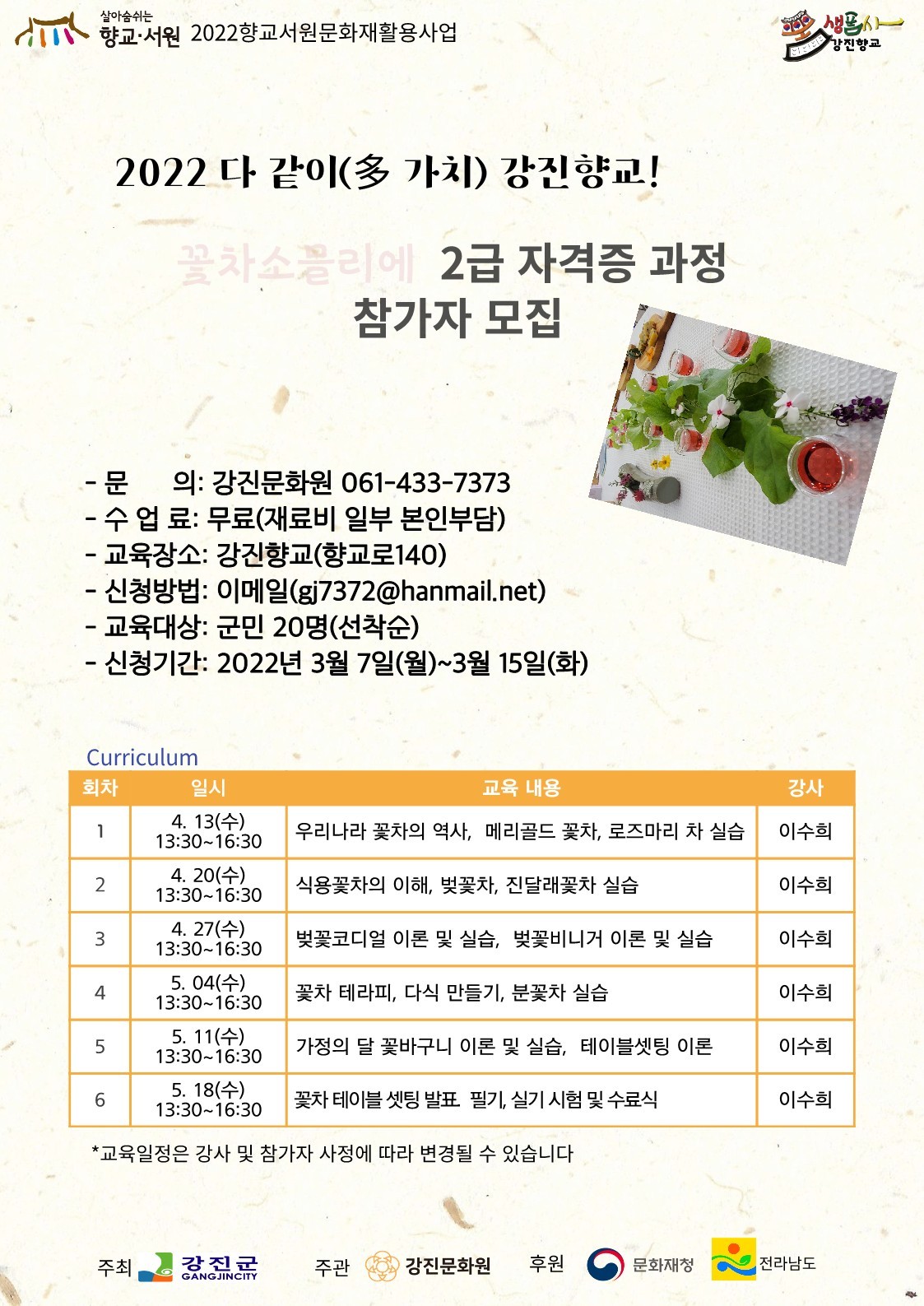 폼生폼士강진향교 <꽃차소믈리에 2급강사 양성교육>