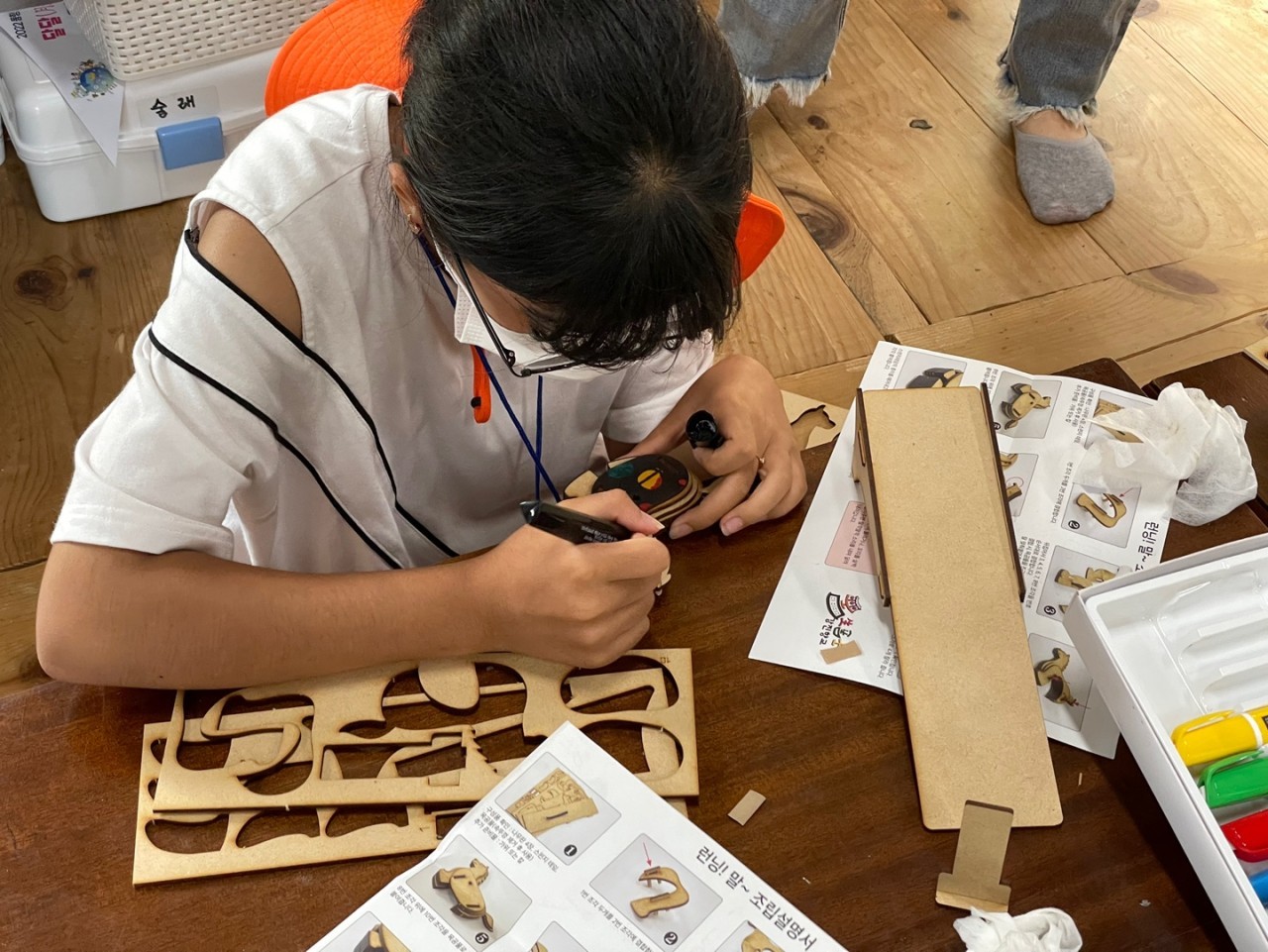 조립을 다 한 친구들이 매직(유성)으로 나만의 말을 색칠하고 있어요~