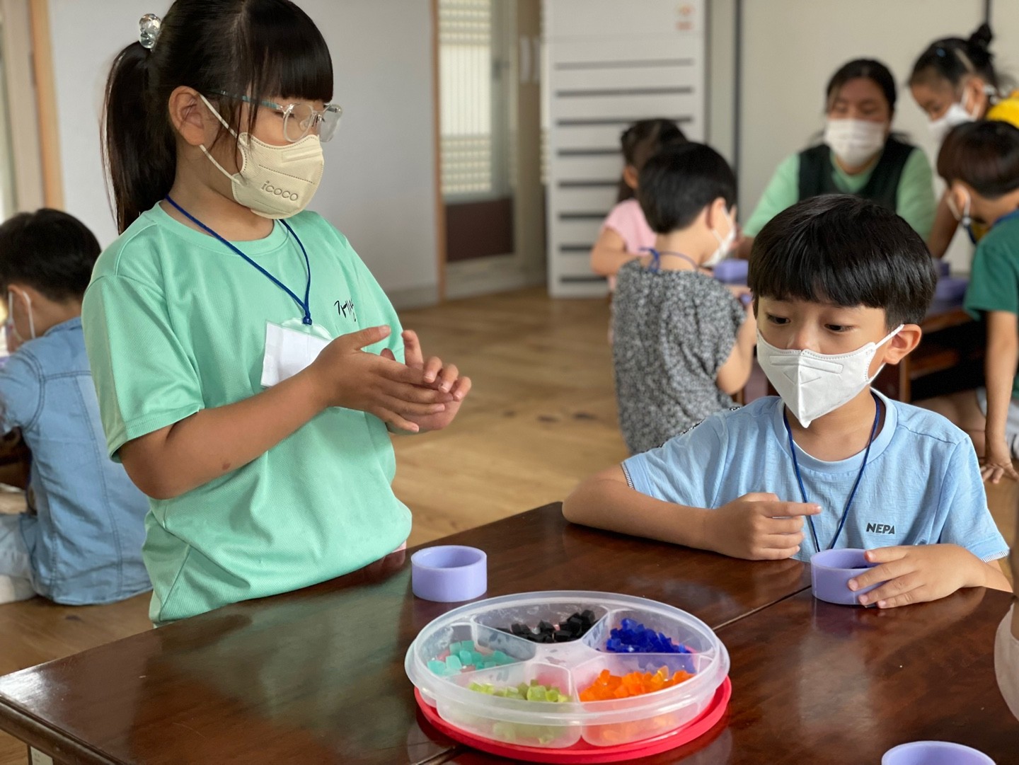 각자 두조각. 세조각씩 모아 나만의 보석비누 만들기를 진행했답니다~^^