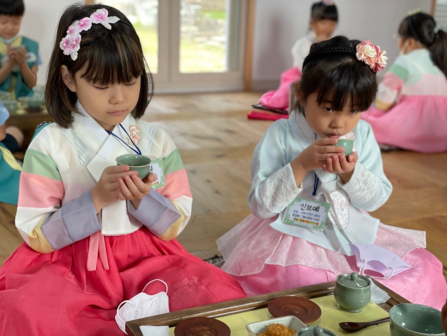 손님들도 의젓하게 두 손으로 차를 음미해보아요~